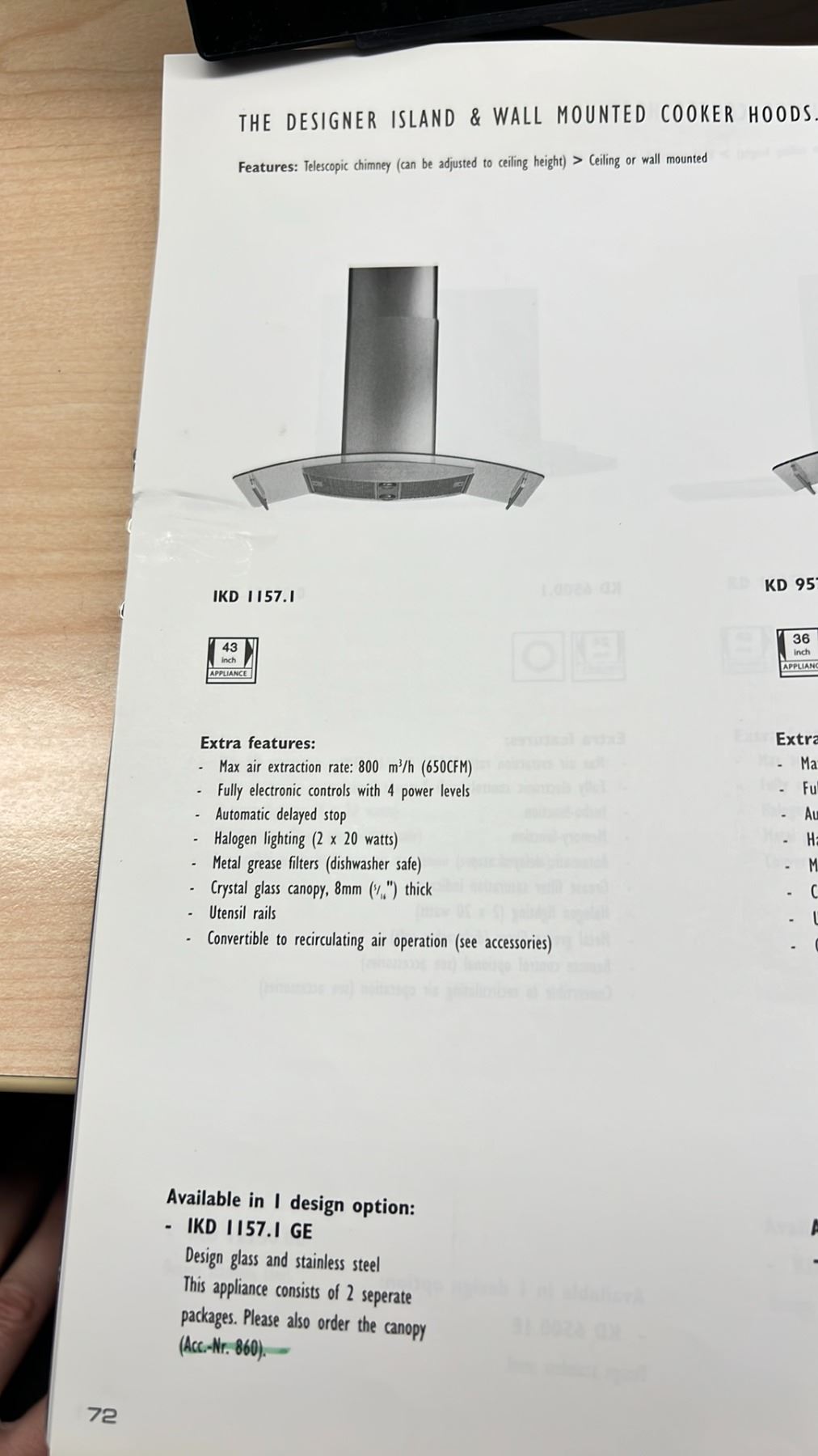 KUPPERSBUSCH IKD1157IGEUL HOOD FAN W/DUCT COVER & GLASS CANOPY