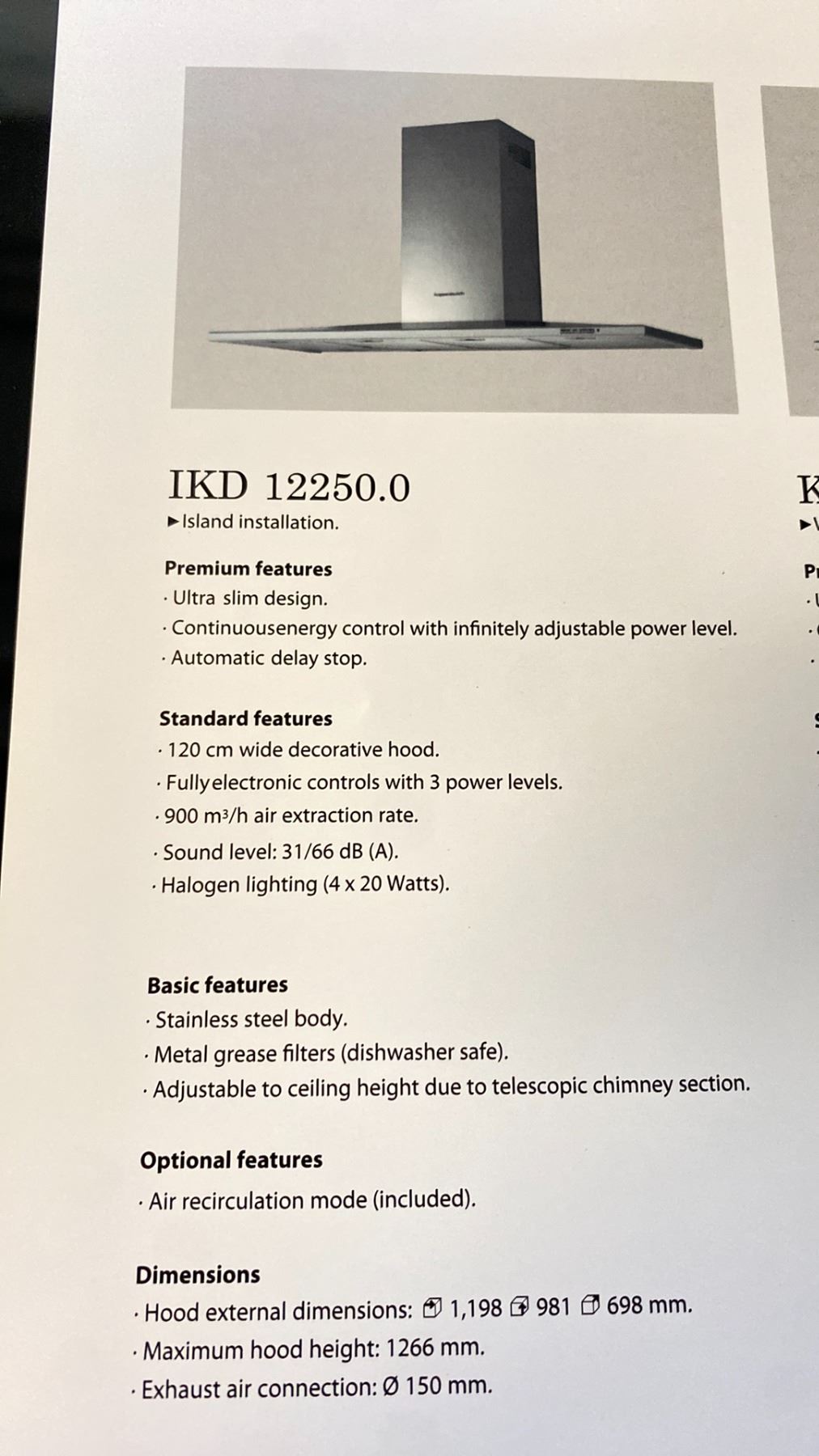 KUPPERSBUSCH IKD12250.0 47.25"W HOOD FAN W/3 POWER LEVELS