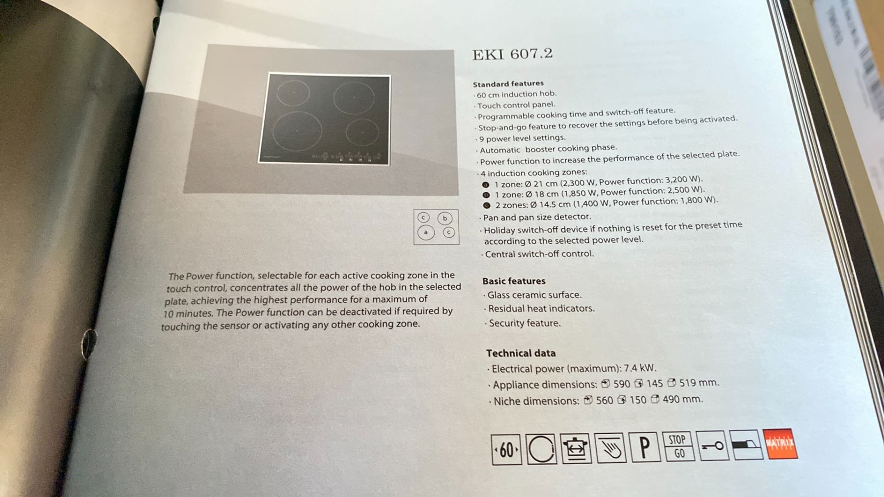 KUPPERSBUSCH INDUCTION COOKTOP EKI6072MUL TOUCH CONTROLS, STAINLESS STEEL TRIM 23.25"W 20.5"D 5.75"H