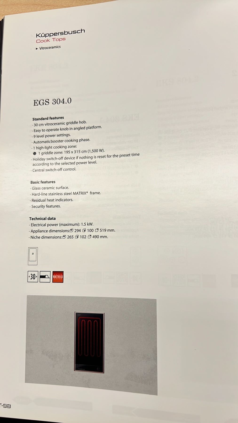 KUPPERSBUSCH MODEL EGS3040 ELECTRIC GRIDDLE CERAN TOP WITH KNOB 11.5"L X 20.5"W X 3.75"D