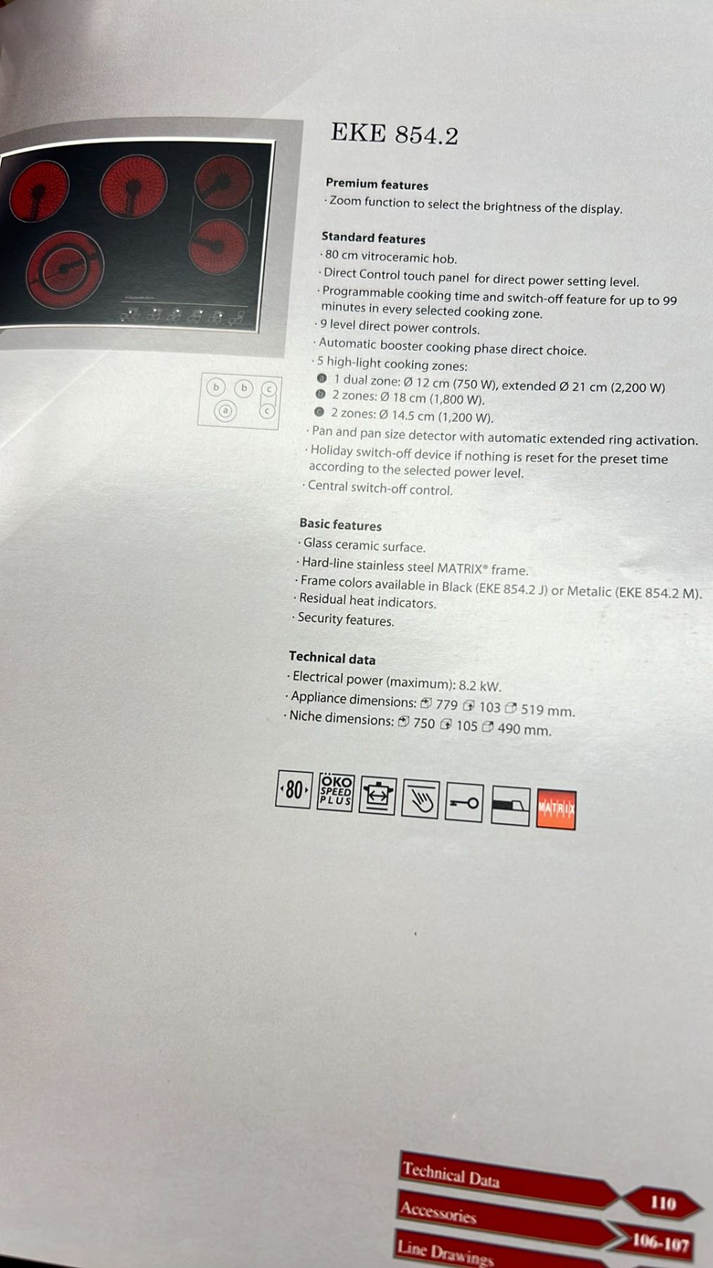 KUPPERSBUSCH MODEL EKE 854.2 M-UL ELECTRIC COOKTOP TOUCH CONTROLS, STAINLESS STEEL TRIM 30.5"L X 20.5"W X 2.5"D