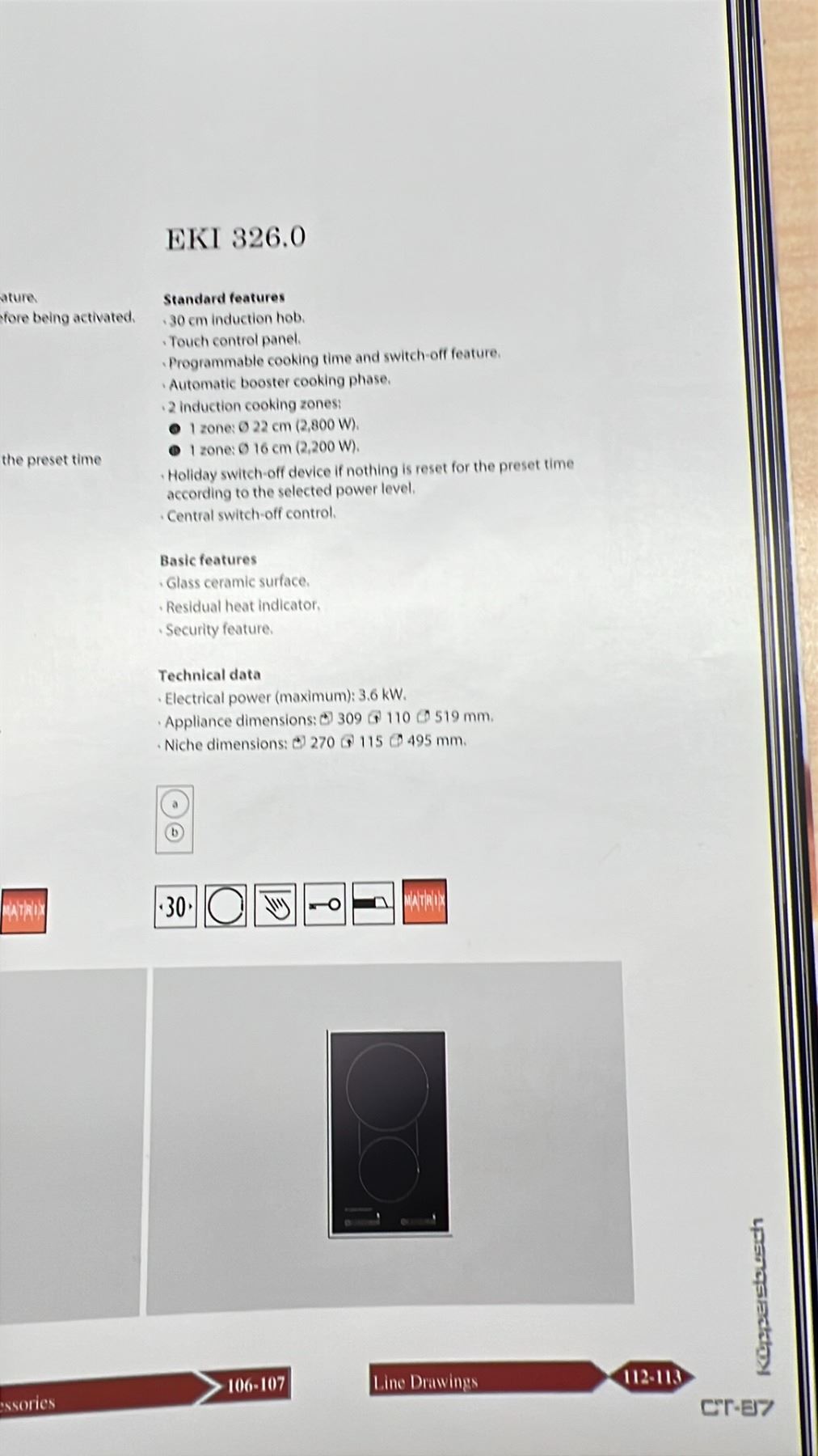 KUPPERSBUSCH MODEL EKI326UL INDUCTION COOKTOP TOUCH CONTROLS, STAINLESS STEEL TRIM 12"L X 20.5"W X 4.5"D