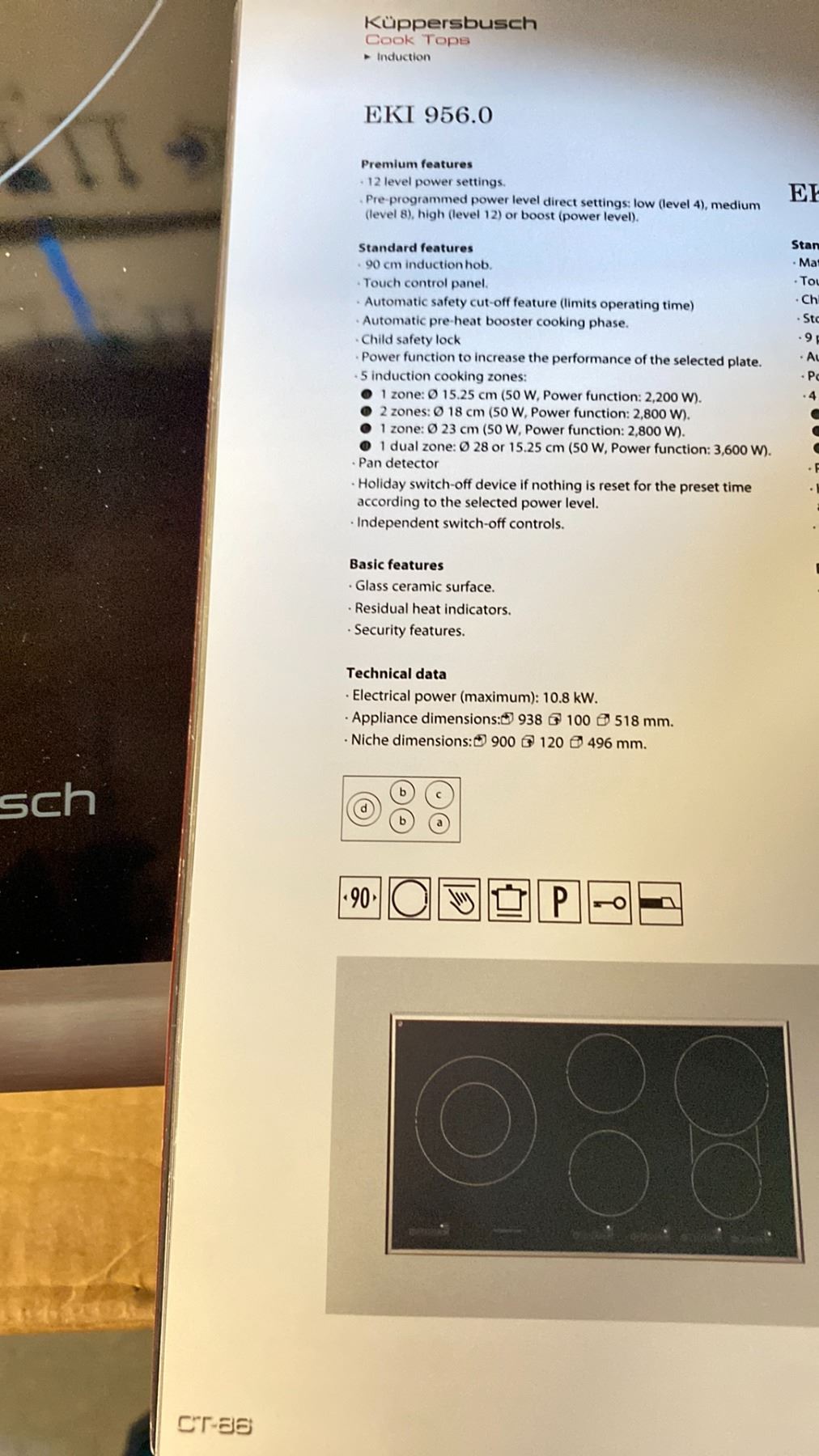 KUPPERSBUSCH MODEL EKI956 INDUCTION COOKTOP TOUCH CONTROLS 37"L X 20.5"W X 4.25"D