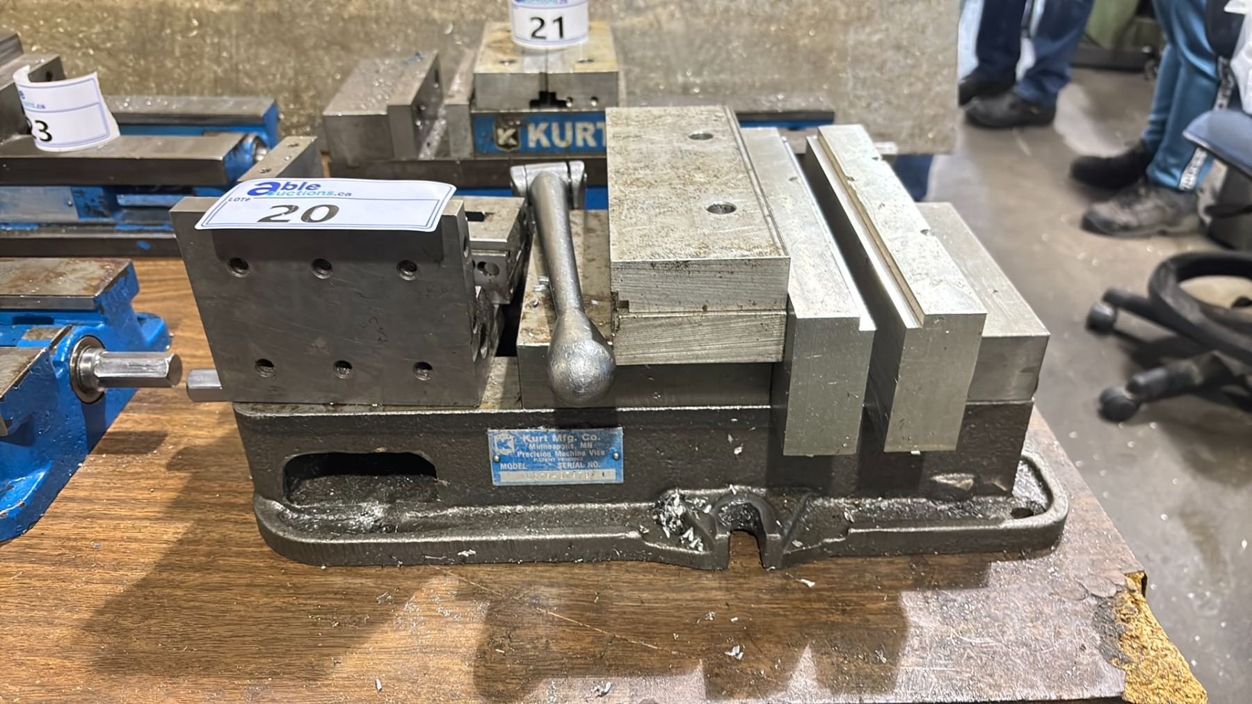 KURT MANUFACTURING CO. INDUSTRIAL MACHINE VISE WITH ASSORTED CLAMP PLATES & CRANK HANDLE
