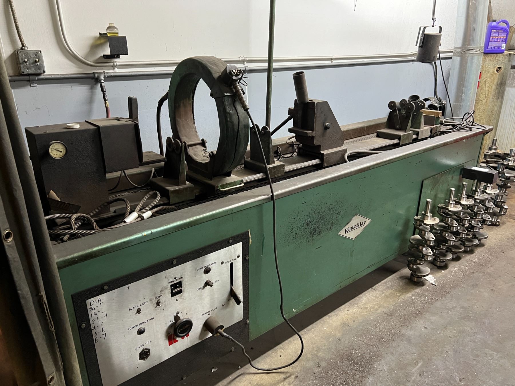 KWIK-WAY WET MAGNA FLUX. 80" CAPACITY. USED FOR WET MAGNA FLUX, CRACK DETECTION ON CRANKSHAFTS (ANY KIND OF SHAFT). (ONLINE PRICE $1500+)