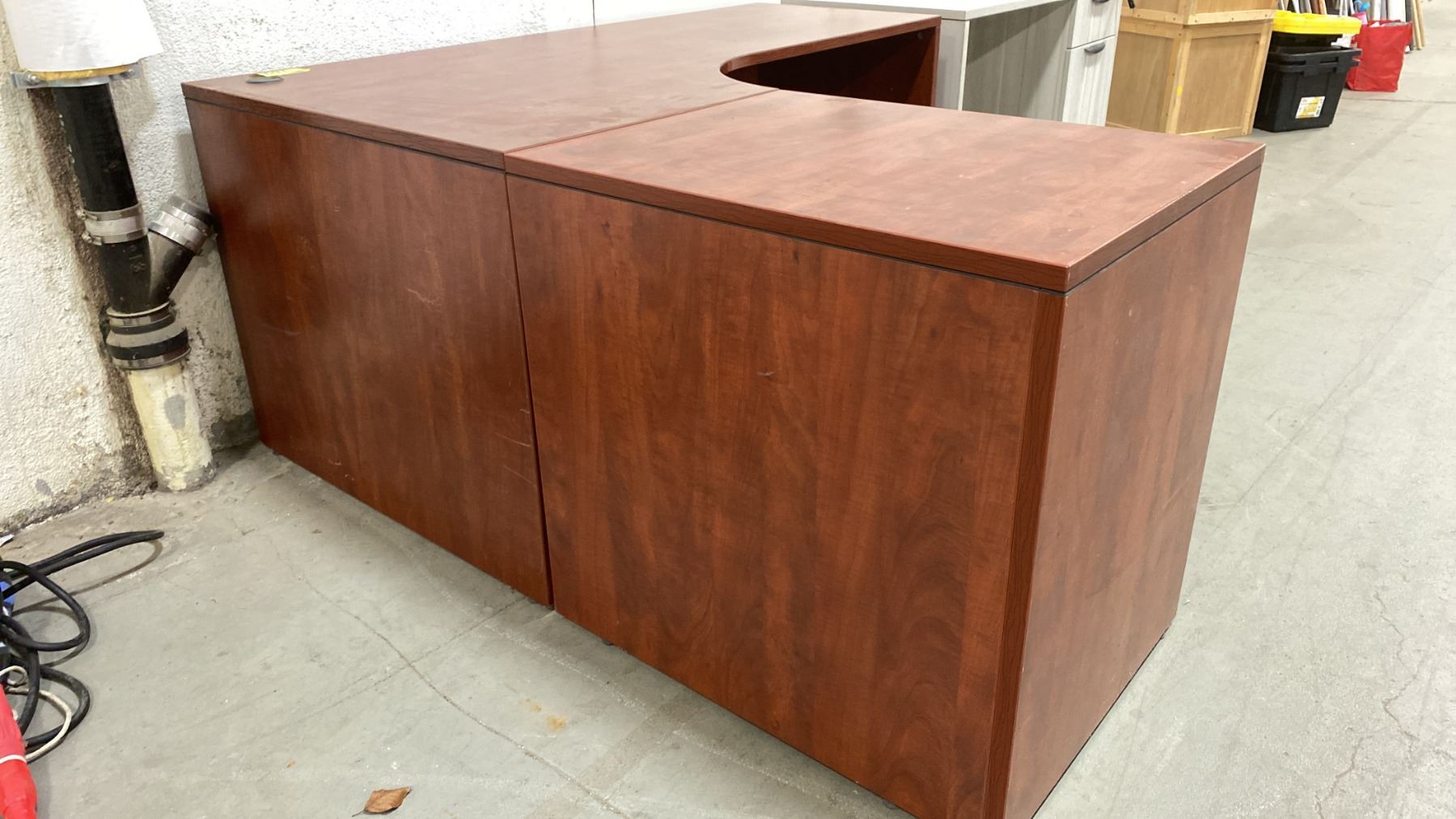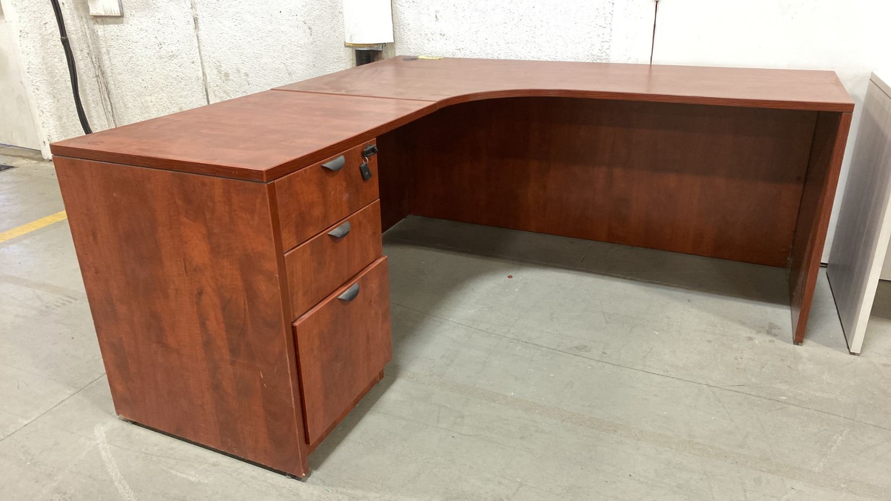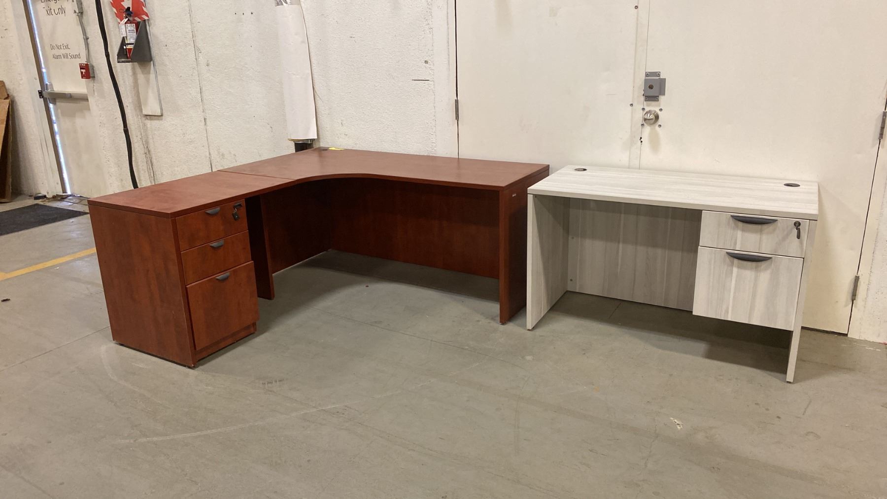 L-SHAPED 3-DRAWER WOOD EXECUTIVE DESK & 2-DRAWER WOOD DESK