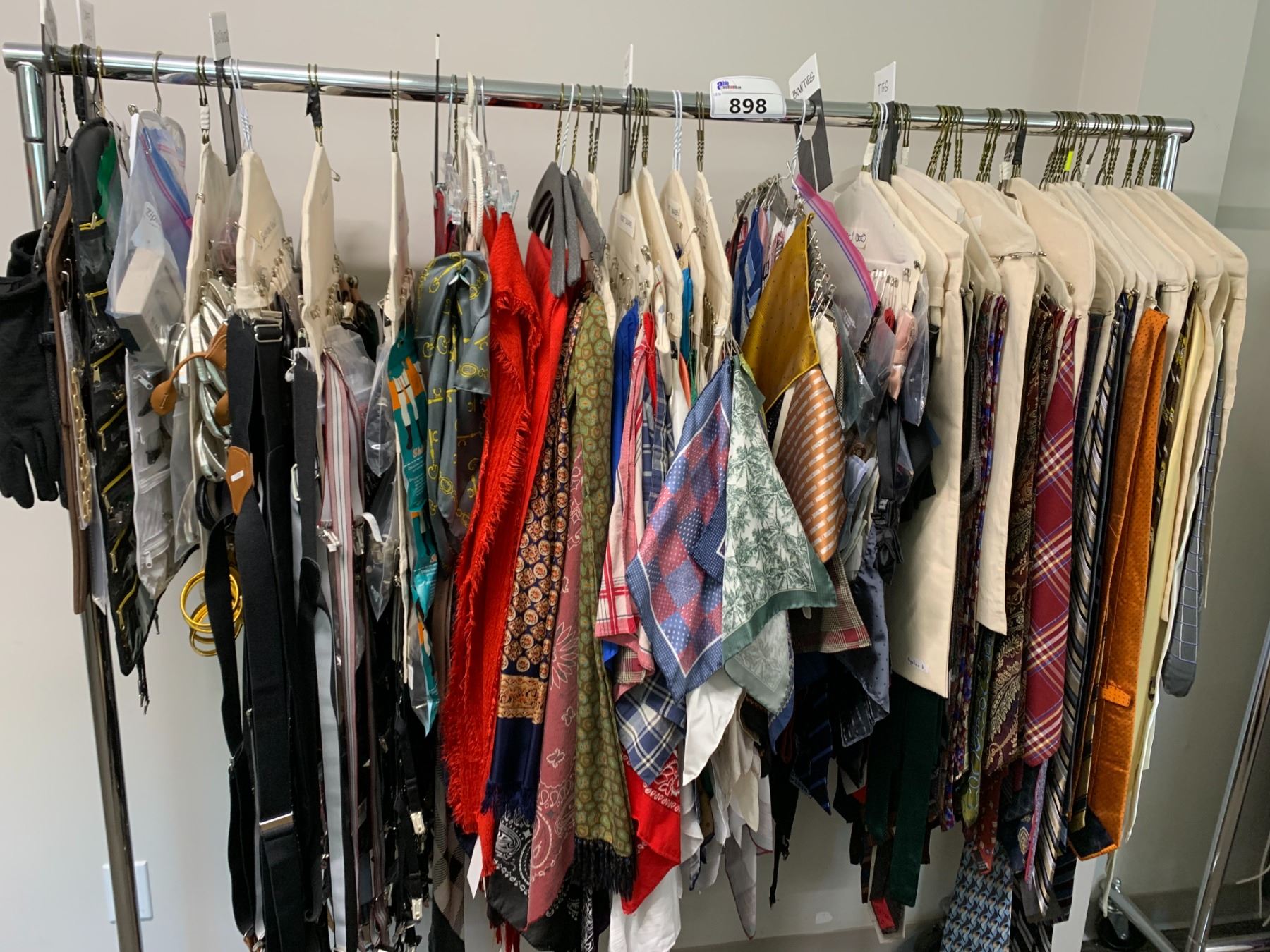 *L2* RACK OF ASSORTED TIES, BOWTIES, SCARVES, SUSPENDERS, CUFF LINKS & MORE (RACK NOT INCLUDED)