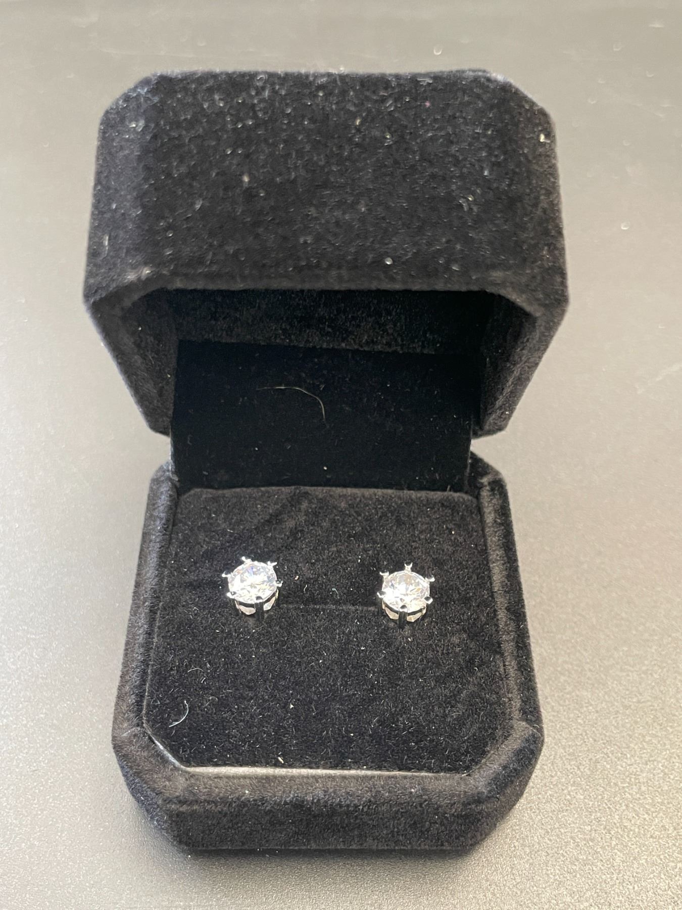 LAB-CREATED WHITE SAPPHIRE STUD EARRINGS 1.0CTEACH, MOUNTED IN STERLING SILVER WITH WHITE GOLD OVERLAY