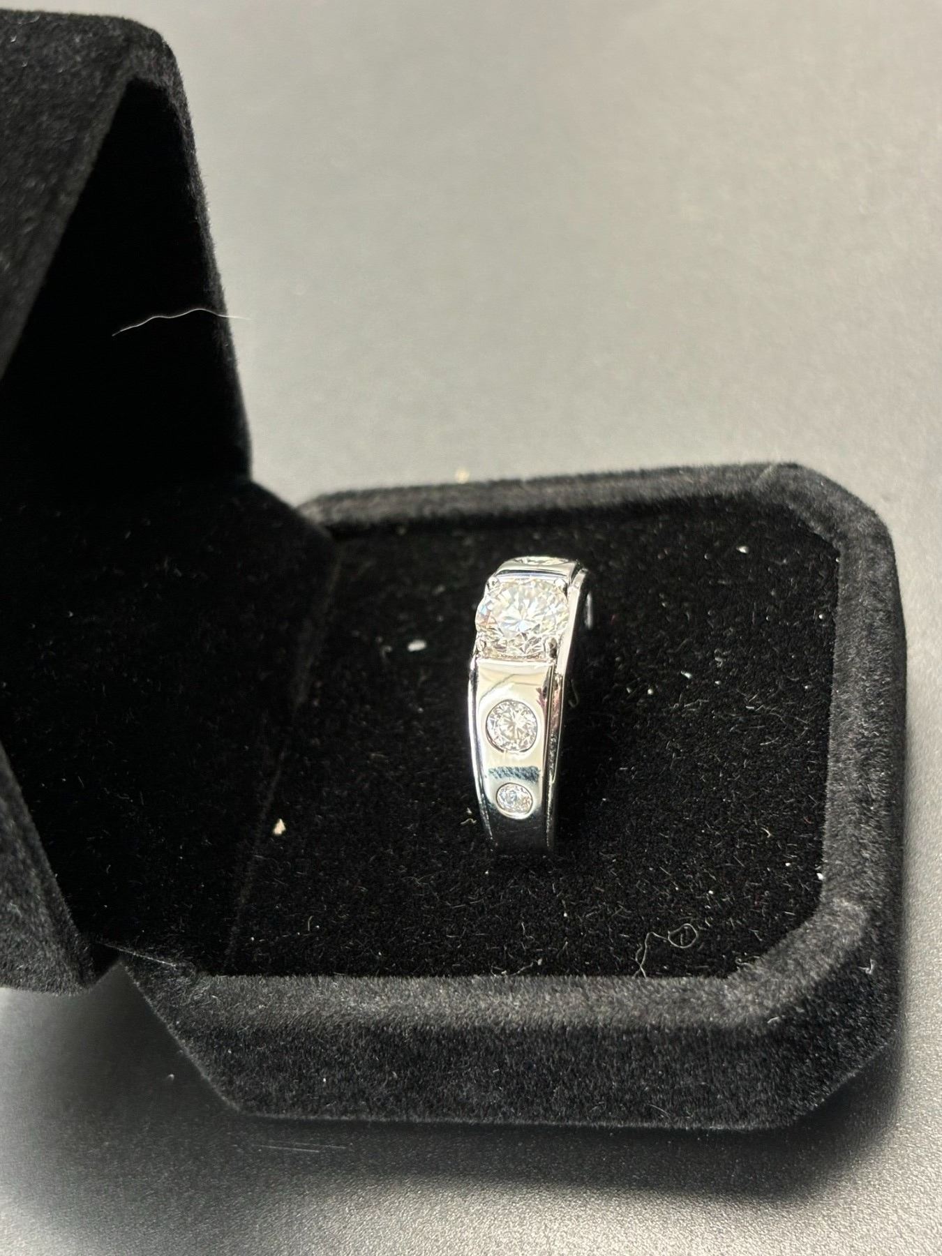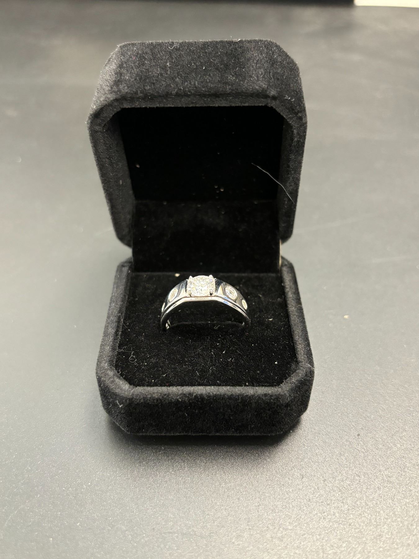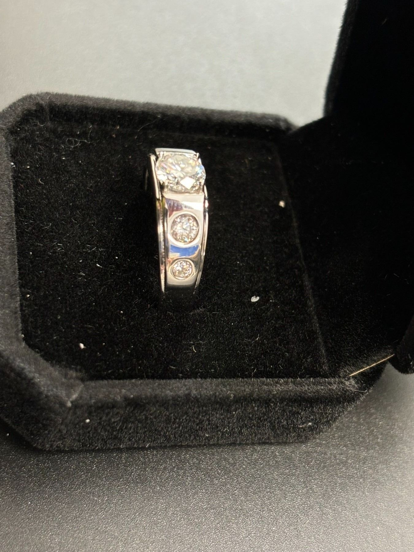 LAB MOISSANITE 1.0CT MENS RING MOUNTED IN 925 STERLING SILVER WITH WHITE GOLD OVERLAY SIZE 10B