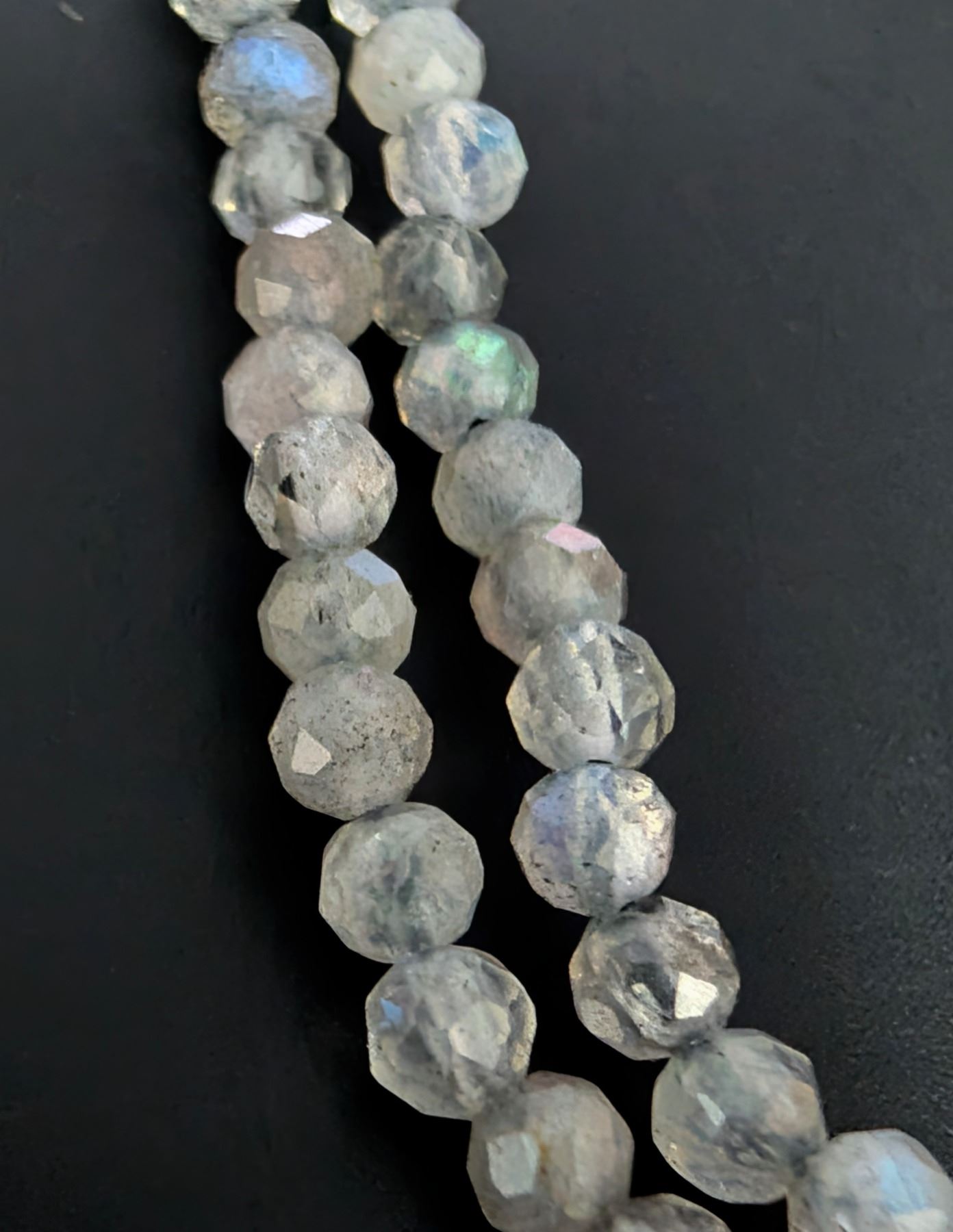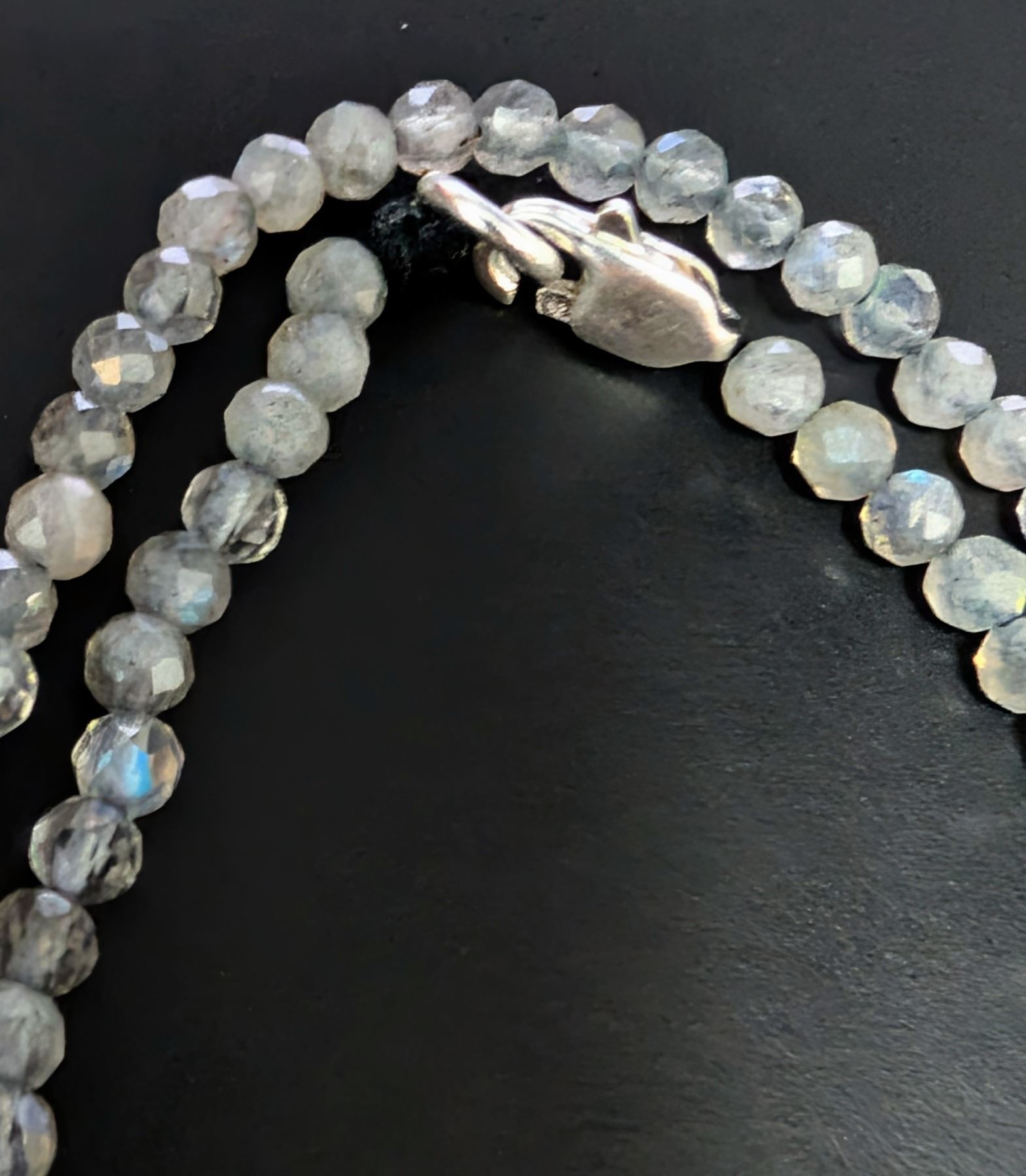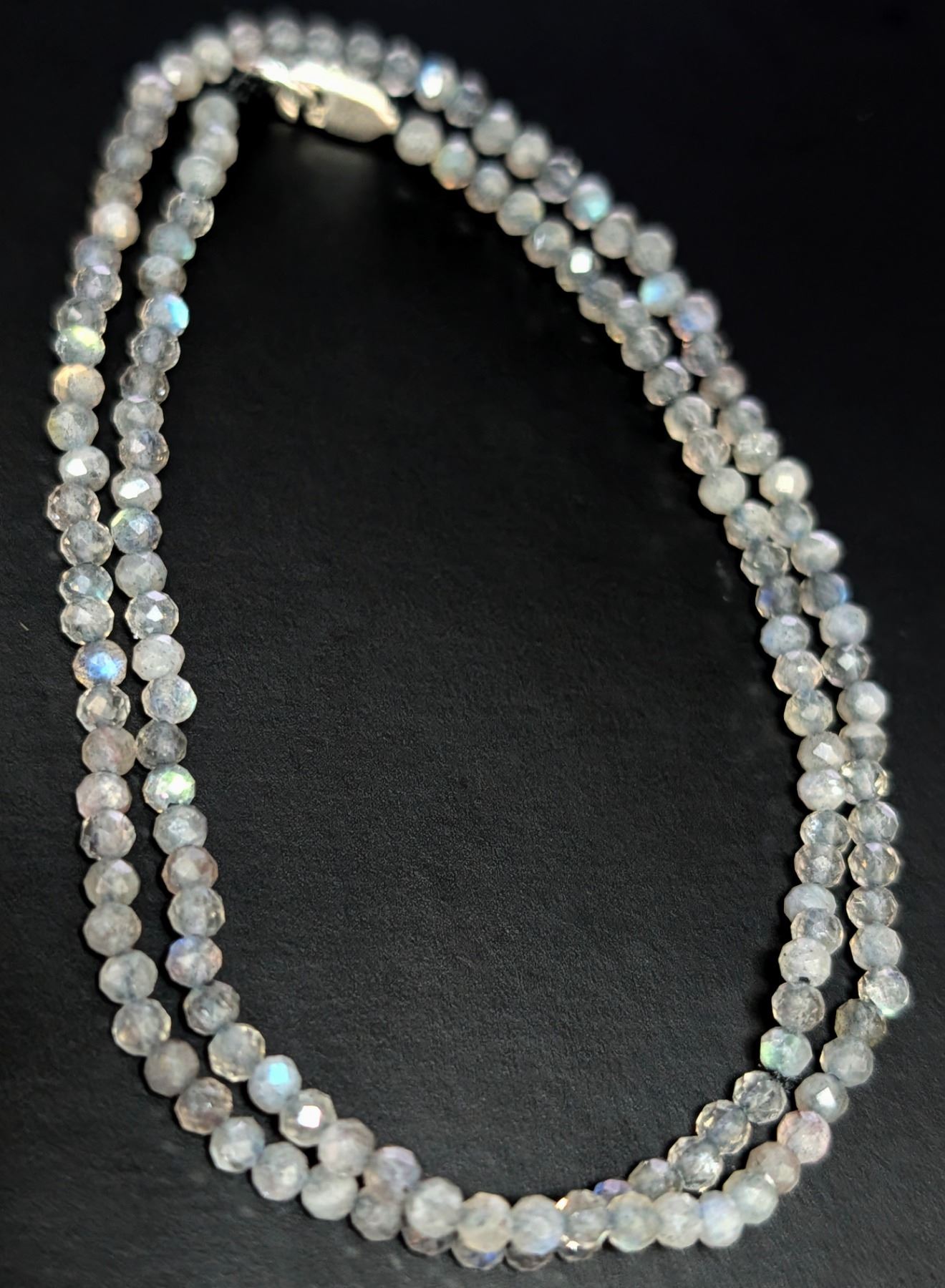 LABRADORITE FACETED BEADS SILVER NECKLACE 13"