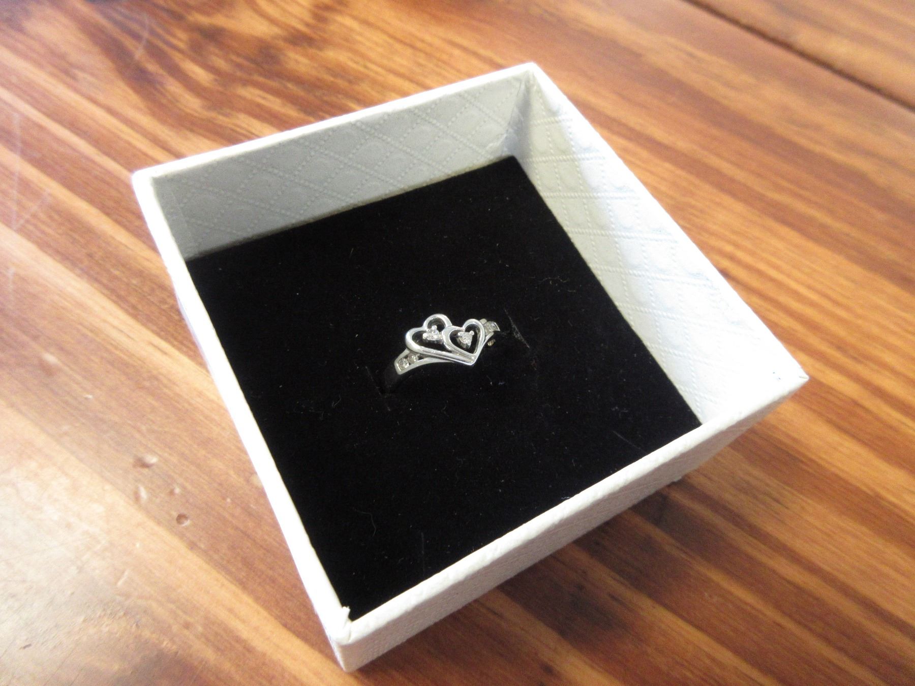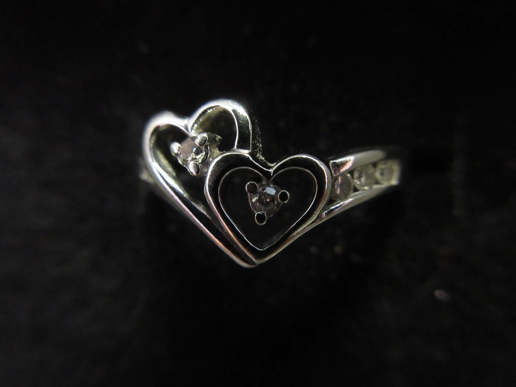 LADIES 10K WHITE GOLD & DIAMOND HEART SHAPED RING B1