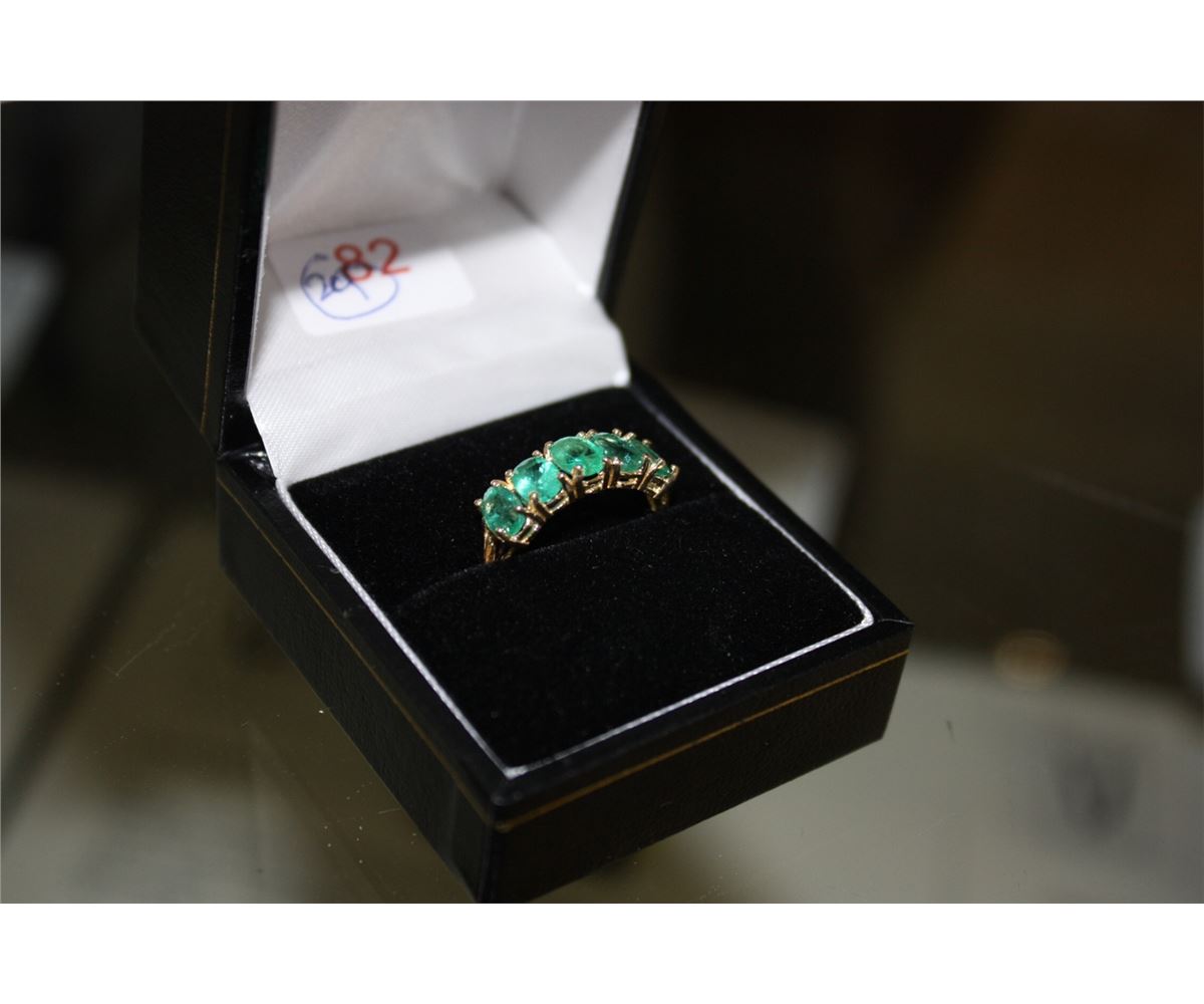 LADIES 10KT GOLD EMERALD DRESS RING WITH 5 EMERALDS, APPROX 1.85CARAT REPLACEMENT VALUE $750