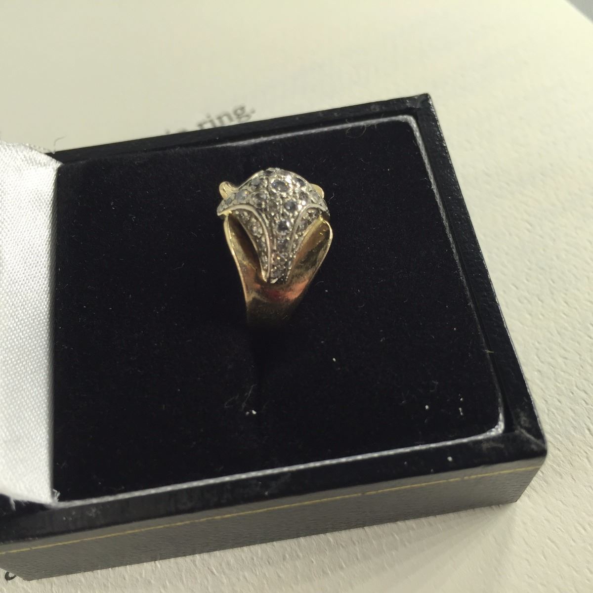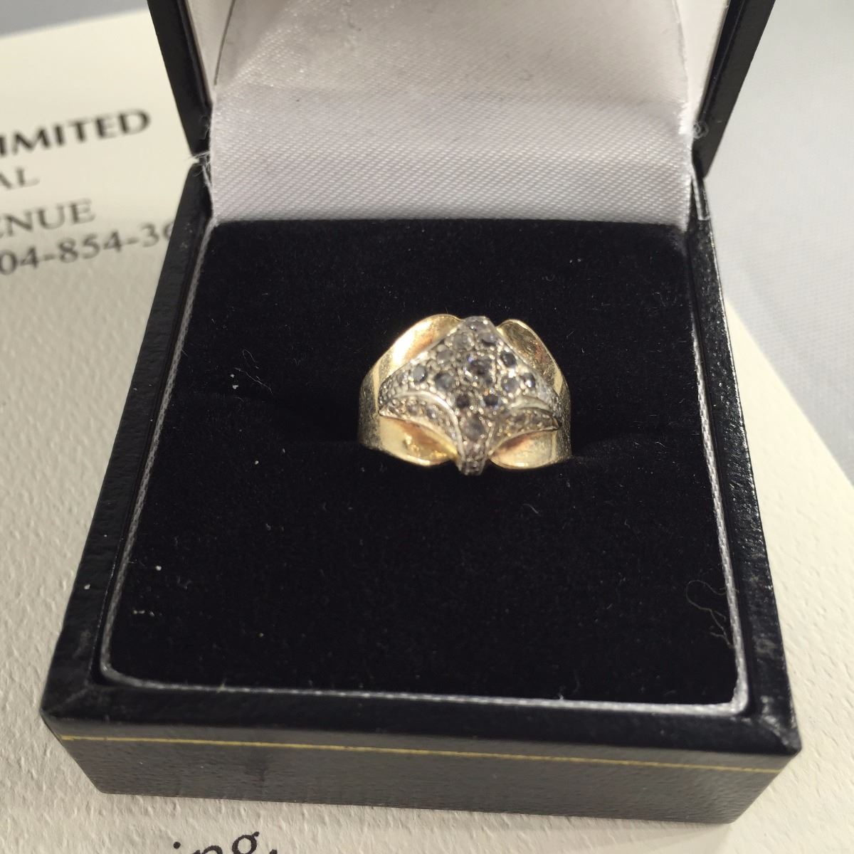 LADIES 10KT YELLOW GOLD & WHITE GOLD DIAMOND SET PINKIE RING. PAVE SET WITH A TOTAL OF 35 ROUND BRILLIANT CUT AND SINGLE CUT DIAMONDS APPROX. 0.30 CARATS. REPLACEMENT VALUE:$975.00
