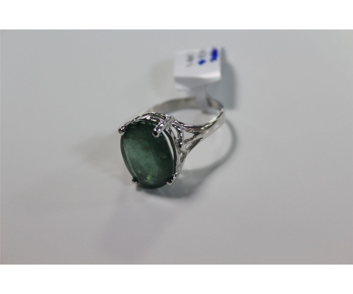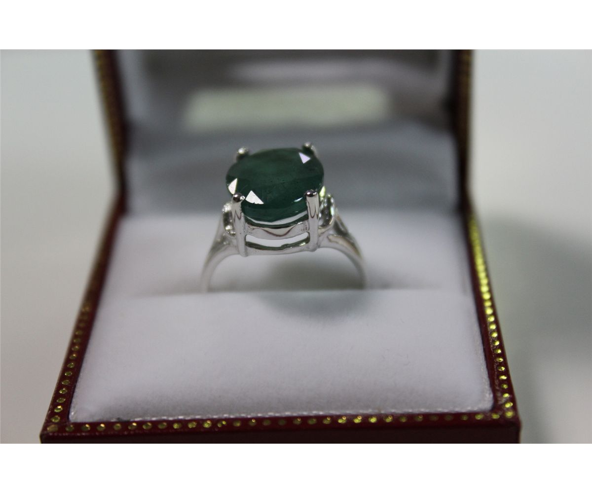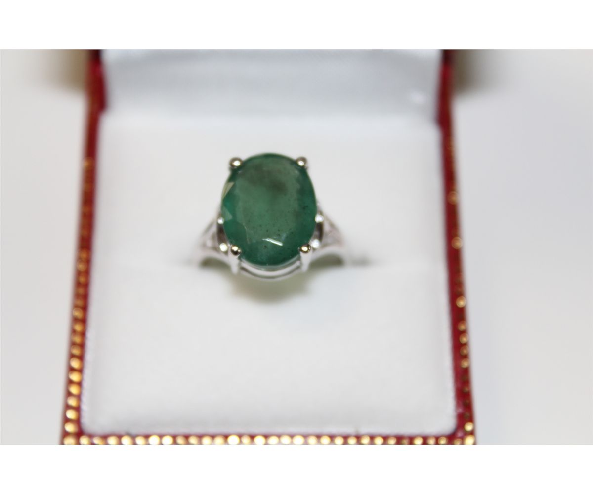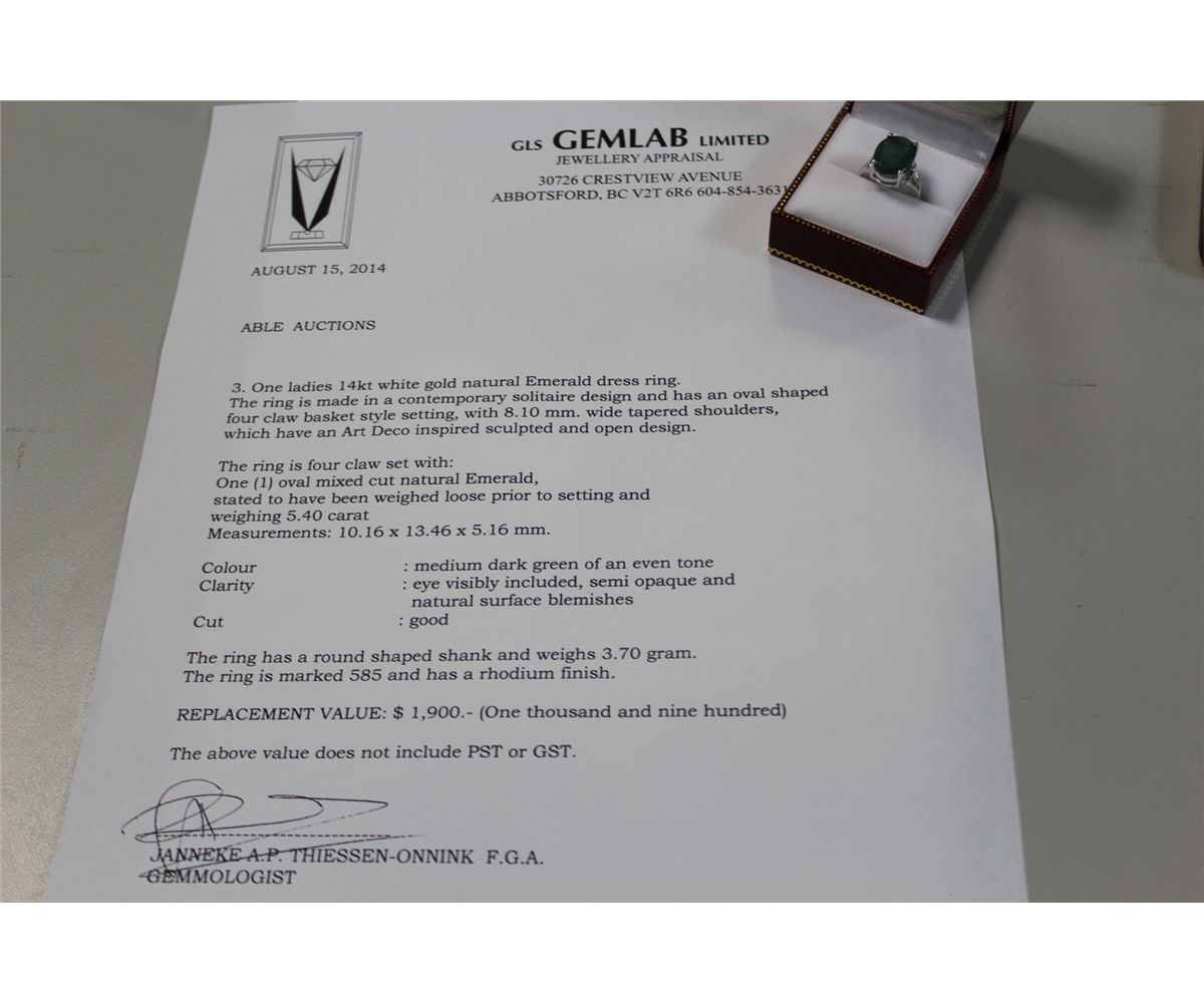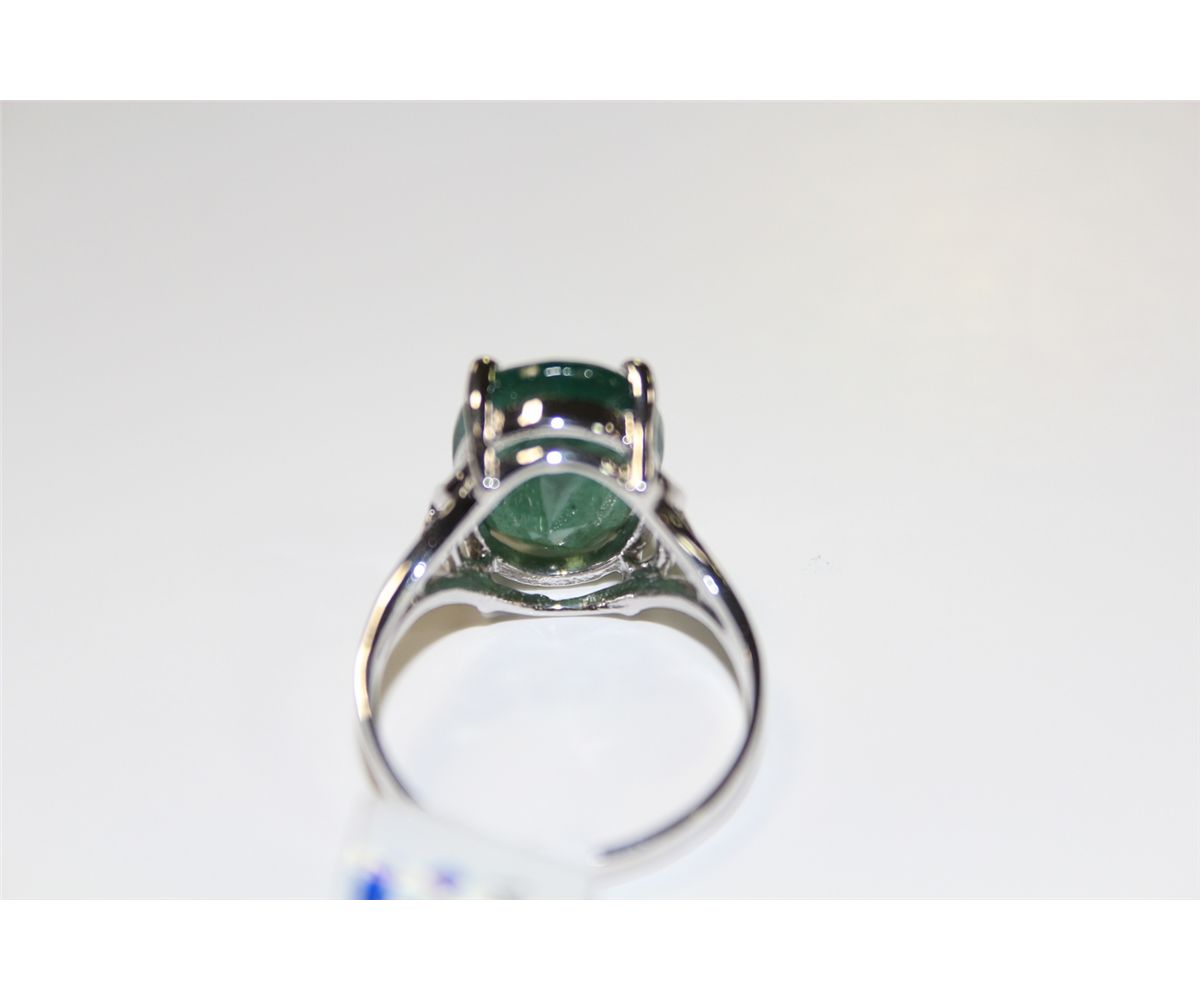 LADIES 14 KT. WHITE GOLD NATURAL EMERALD DRESS RING CLAW SET WITH 1 OVAL MIXED CUT NATURAL EMERALD WEIGHING 5.40 CARATS. REPLACEMENT VALUE: $1900.00