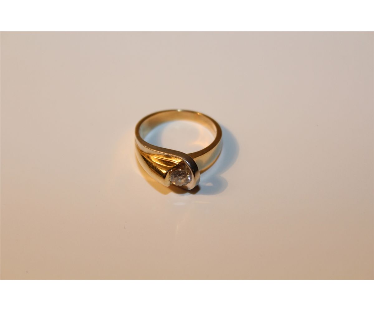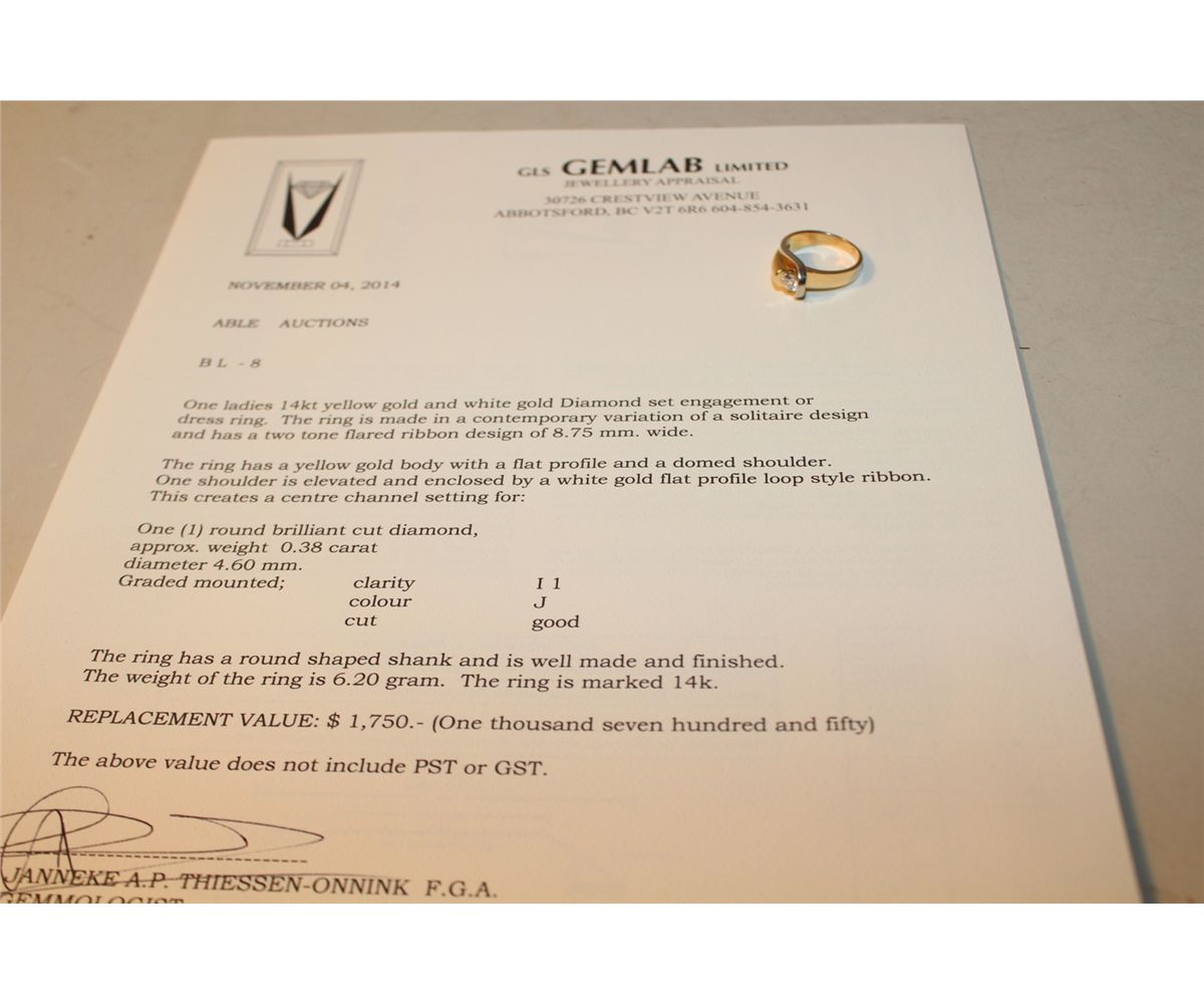 LADIES 14 KT YELLOW GOLD & WHITE GOLD DIAMOND SET ENGAGEMENT OF DRESS RING SET WITH 1 ROUND BRILLIANT CUT DIAMOND APPROX. 0.38 CARATS. REPLACEMENT VALUE: $1750.00