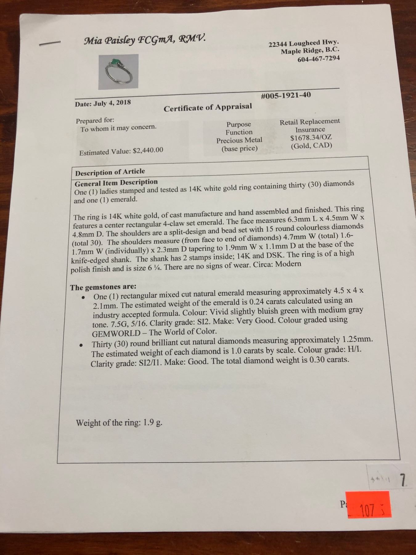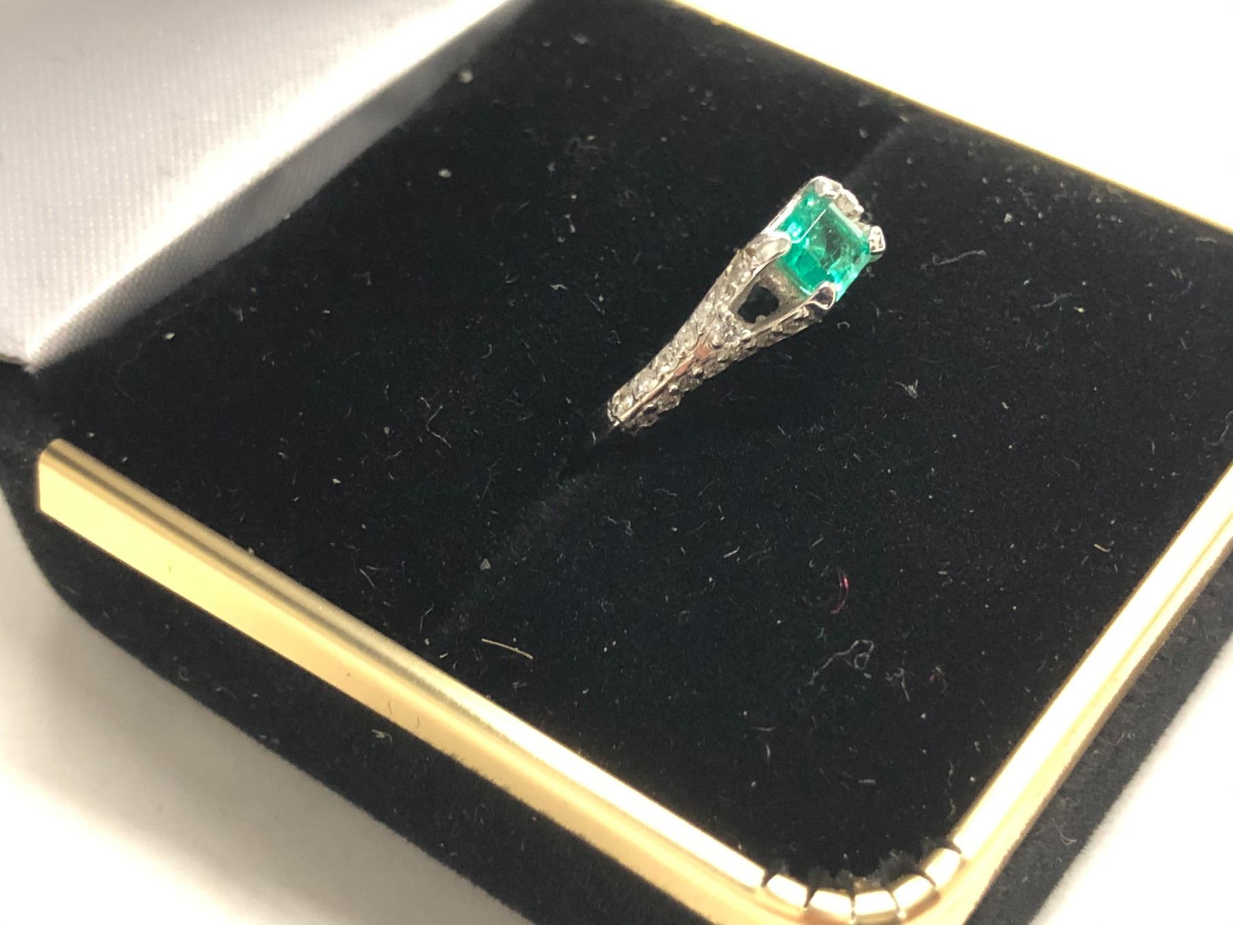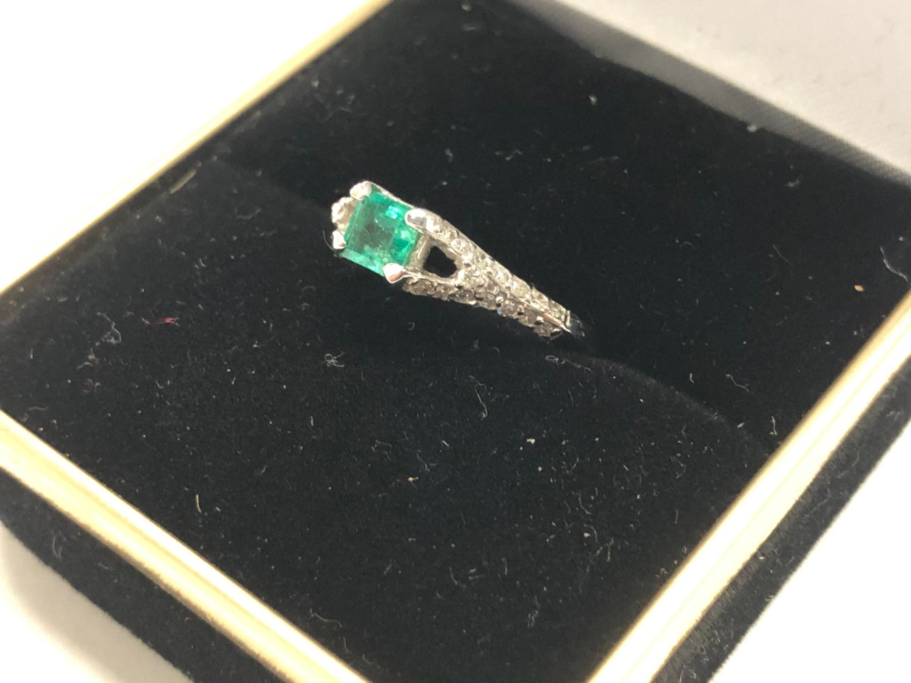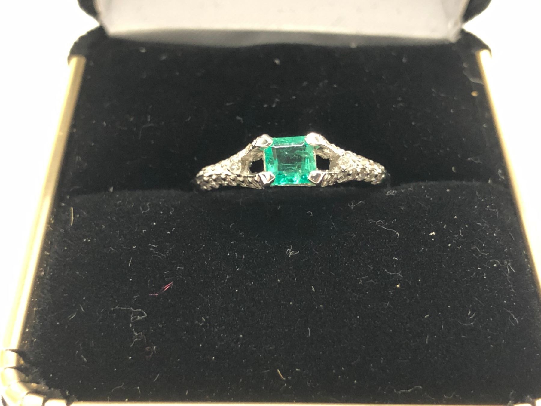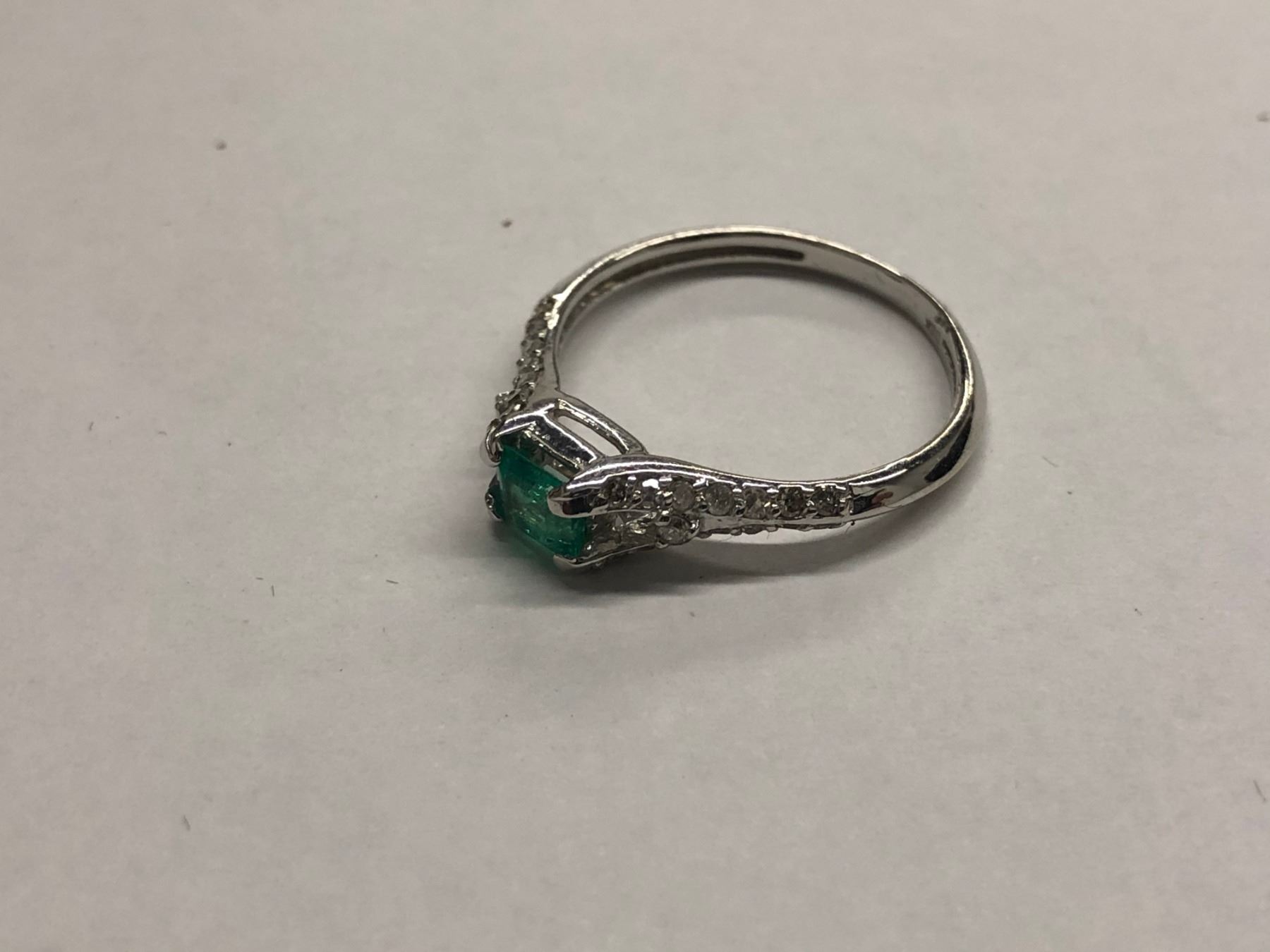 LADIES 14K WHITE GOLD EMERALD & 30 DIAMOND RING - APPRAISED VALUE $2440.00 0.30CTS DIAMONDS / 1.9GMS GOLD / 7.5GMS EMERALD