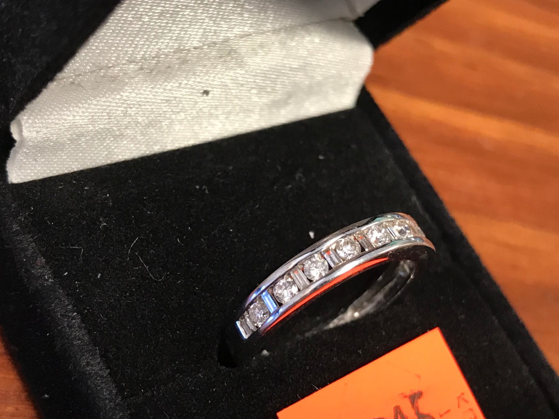 LADIES 14K WHITE GOLD RING CONTAINING NINETEEN DIAMONDS-APPRAISED VALUE $3810.00 (0.99CTS DIAMONDS / 2.7GMS GOLD)