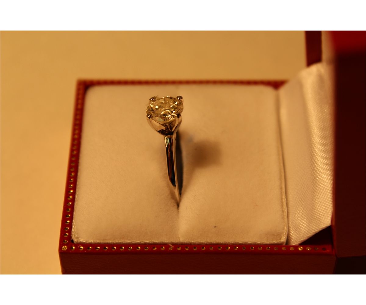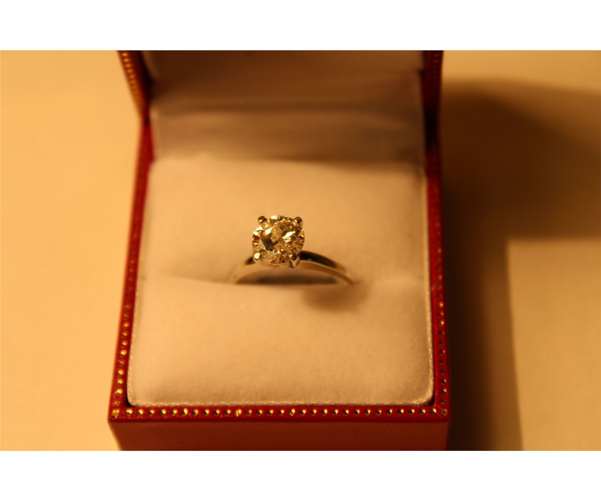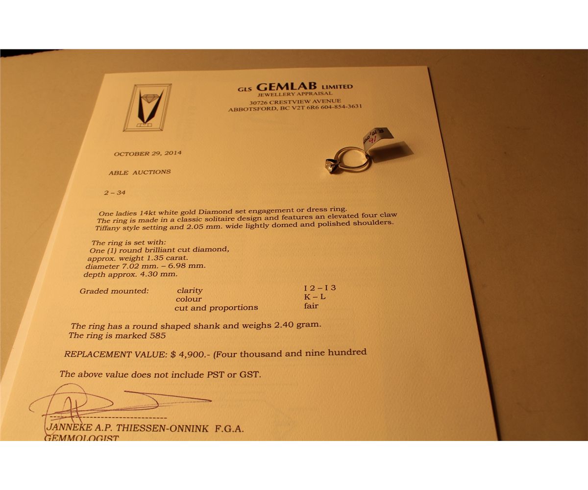 LADIES 14KT WHITE GOLD DIAMOND SET ENGAGEMENT OR DRESS RING SET WITH 1 ROUND BRILLIANT CUT DIAMOND APPROX. 1.35 CARATS. REPLACEMENT VALUE: $4900.00
