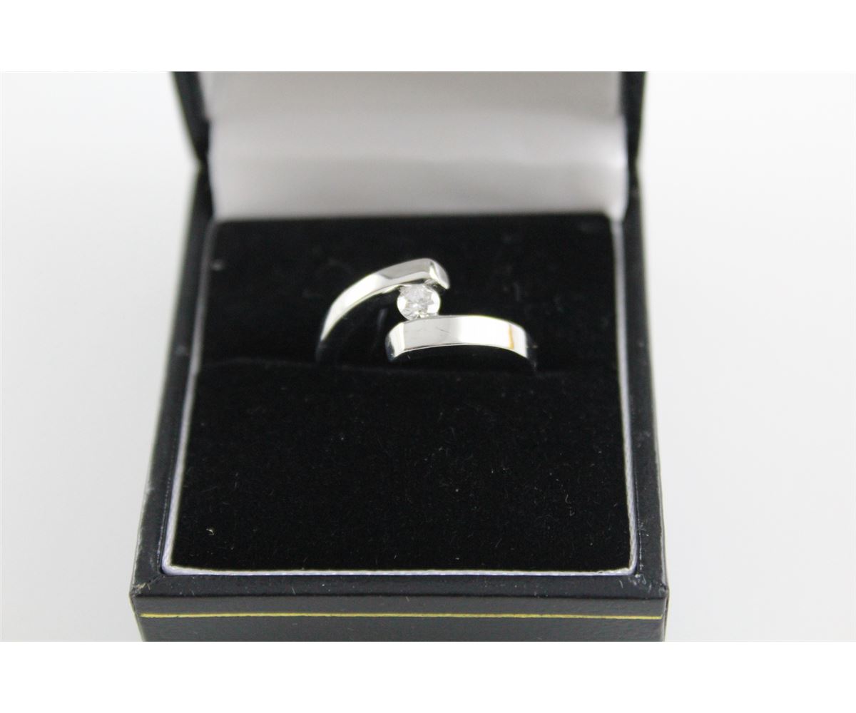 LADIES 14KT WHITE GOLD DIAMOND SET ENGAGEMENT OR DRESS RING WHICH HOLDS 1 ROUND BRILLIANT CUT DIAMOND APPROX 0.20 CARATS. REPLACEMENT VALUE:$900.