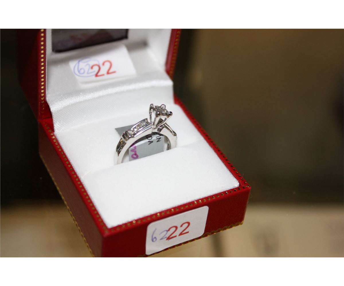 LADIES 14KT WHITE GOLD DIAMOND SET ENGAGEMENT RING WITH 4 DIAMONDS, APPROX 0.28CARAT, AND 8 DIAMONDS, APPROX 0.20CARAT REPLACEMENT VALUE $1200