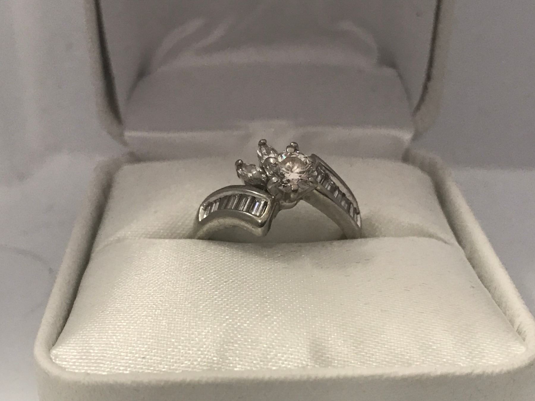 LADIES 19K WHITE GOLD RING CONTAINING 16 DIAMONDS - APPRAISED VALUE $8960.00 1.43CTS DIAMONDS / 4.9GMS GOLD)