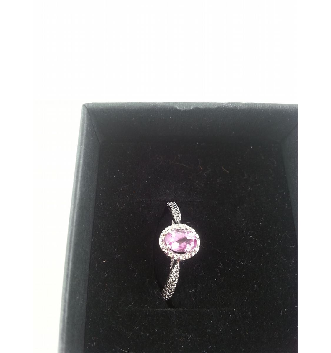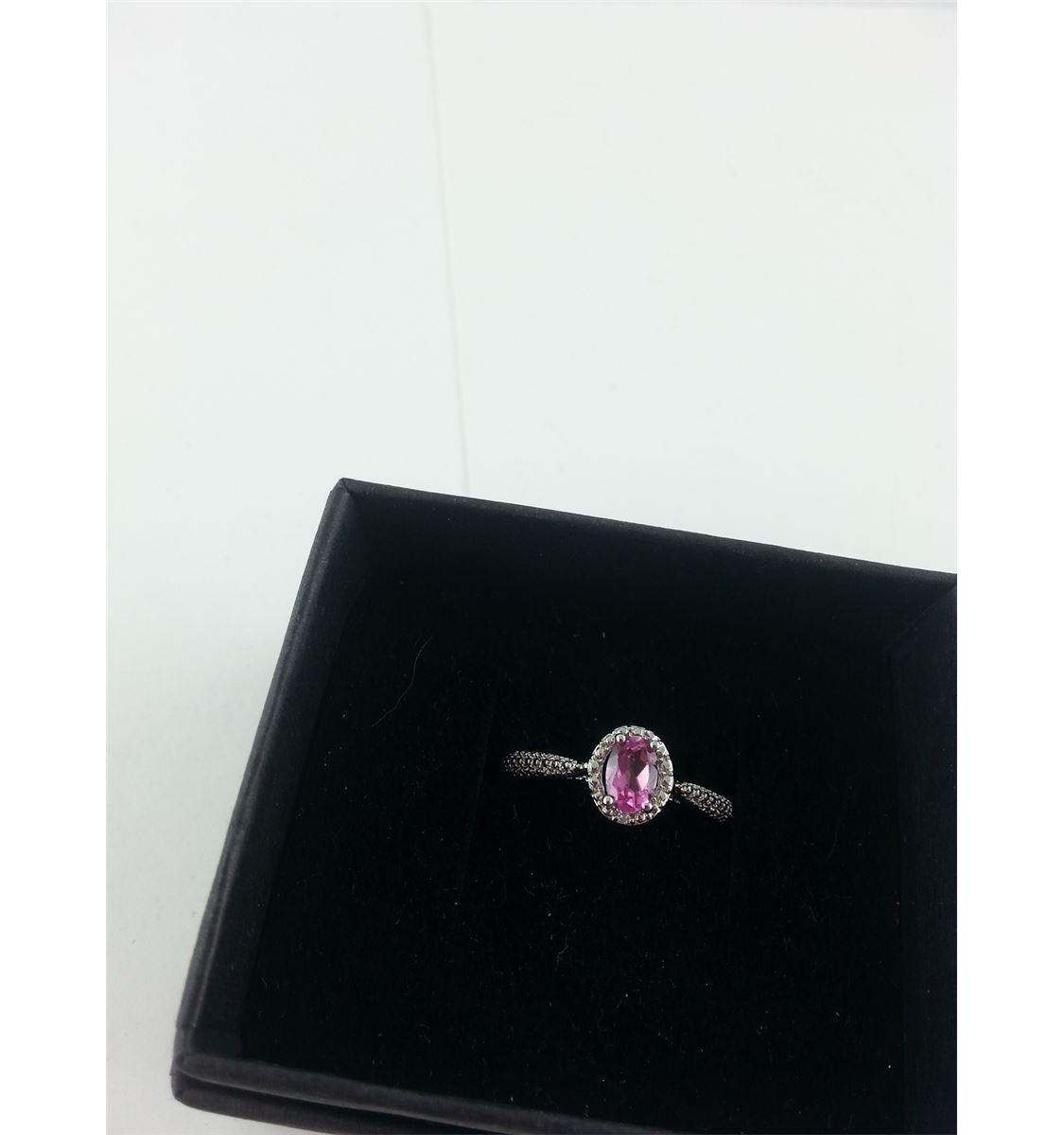 LADIES DEEP PINK TOPAZ AND DIAMOND SOLITAIRE RING. OVAL CUT. NICELY DETAILED
