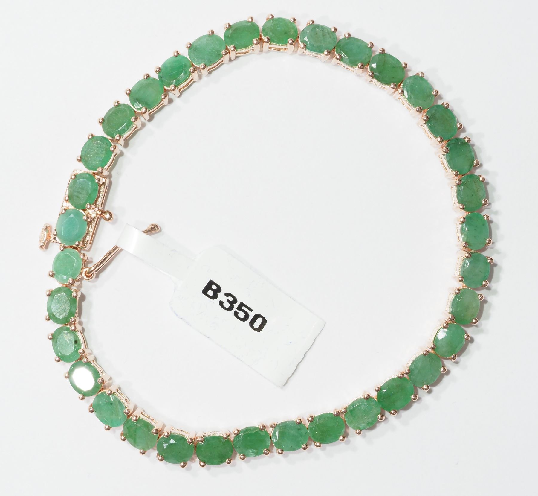 LADIES STERLING SILVER BRACELET CONTAINING 34 EMERALDS-APPRAISED VALUE $740