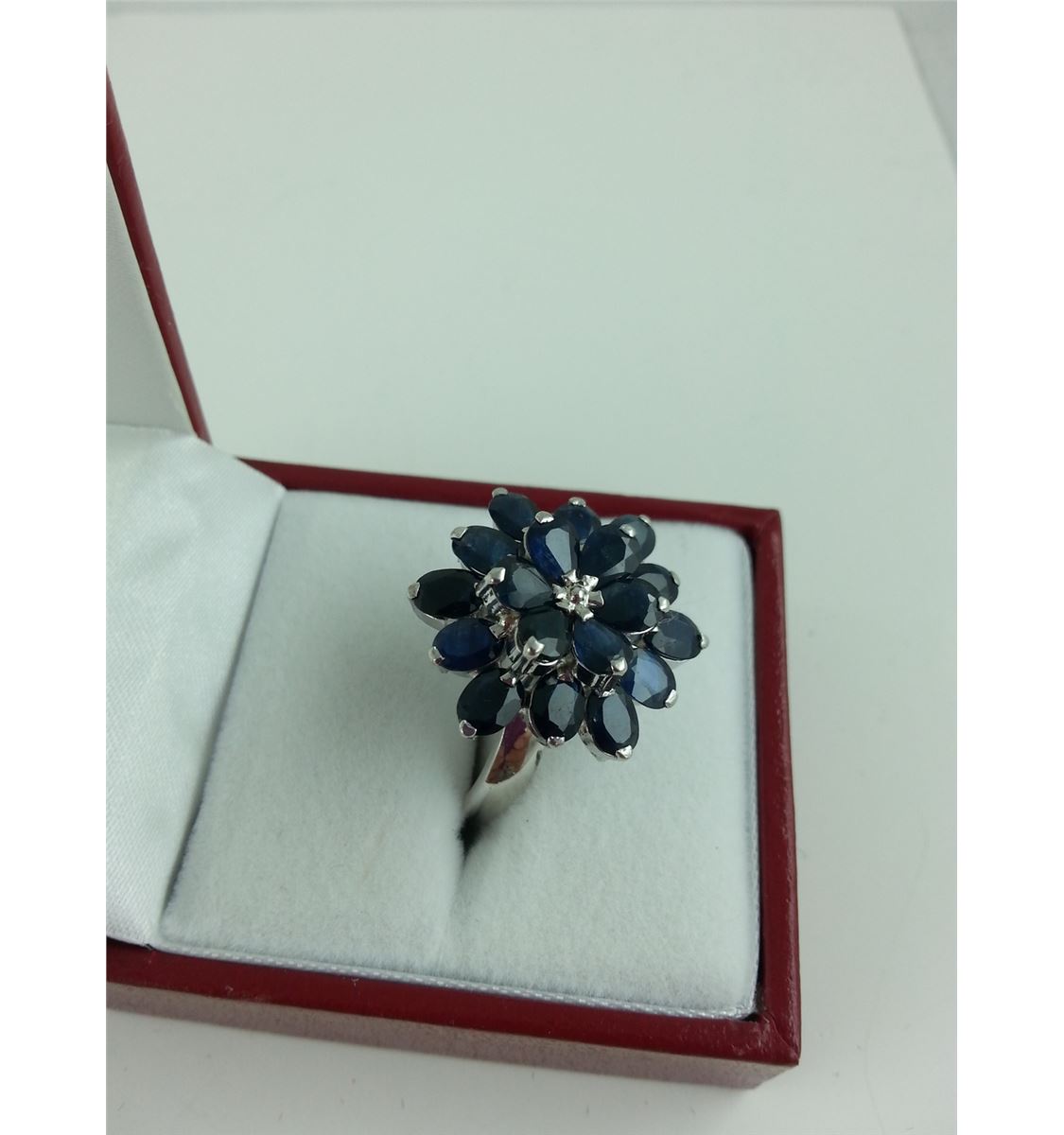 LADIES STERLING SILVER NATURAL BLUE SAPPHIRE DRESS RING SET WITH 18 BLUE SAPPHIRES, APPROX 5.50CARAT REPLACEMENT VALUE $325