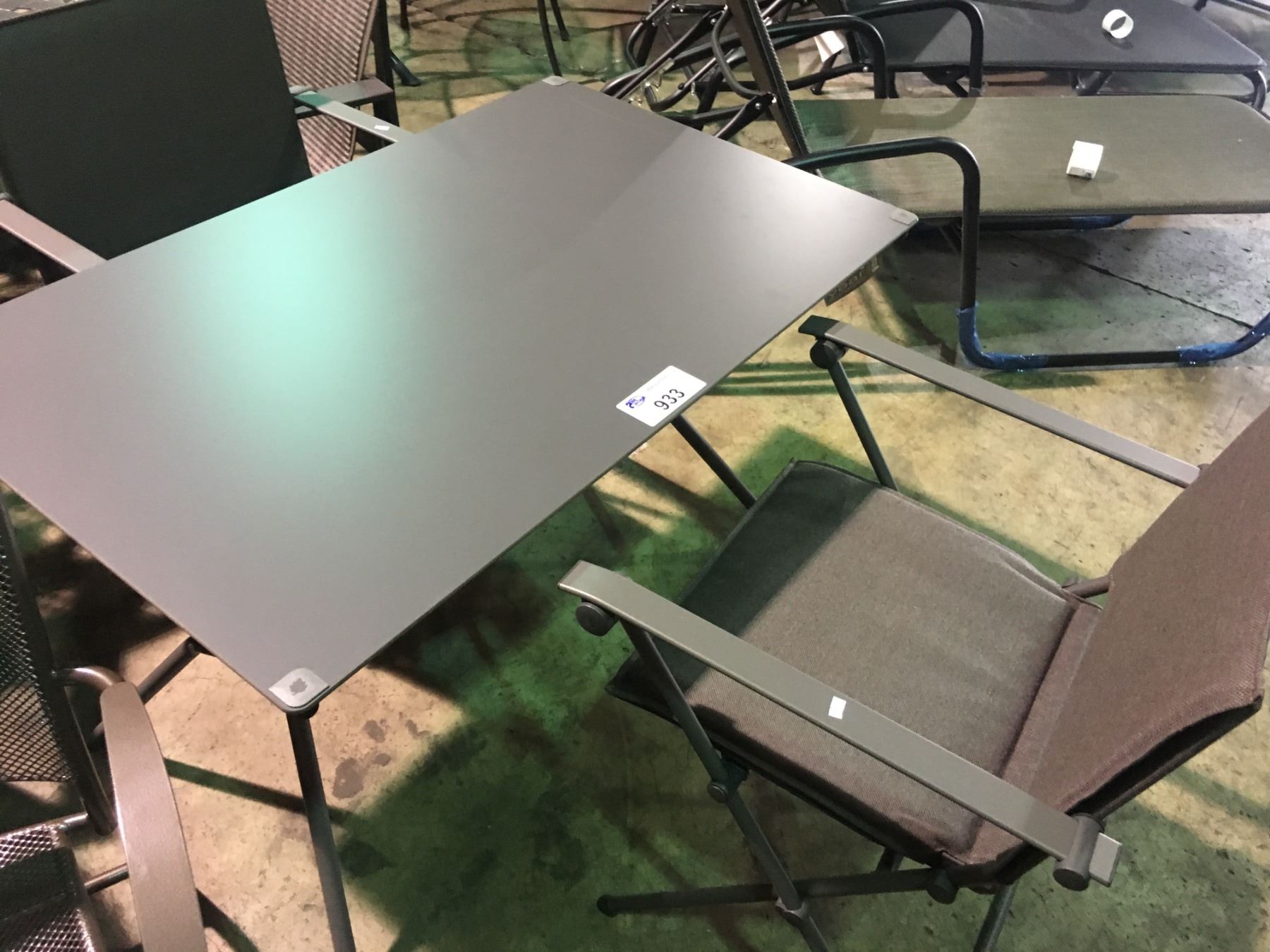 LAFUMA MOBILIER GREY FOLDING 3PCS OUTDOOR PATIO TABLE SET INCLUDING: 2 FOLDING FABRIC ARM CHAIRS & 27" X 43" RECTANGULAR FOLDING TABLE