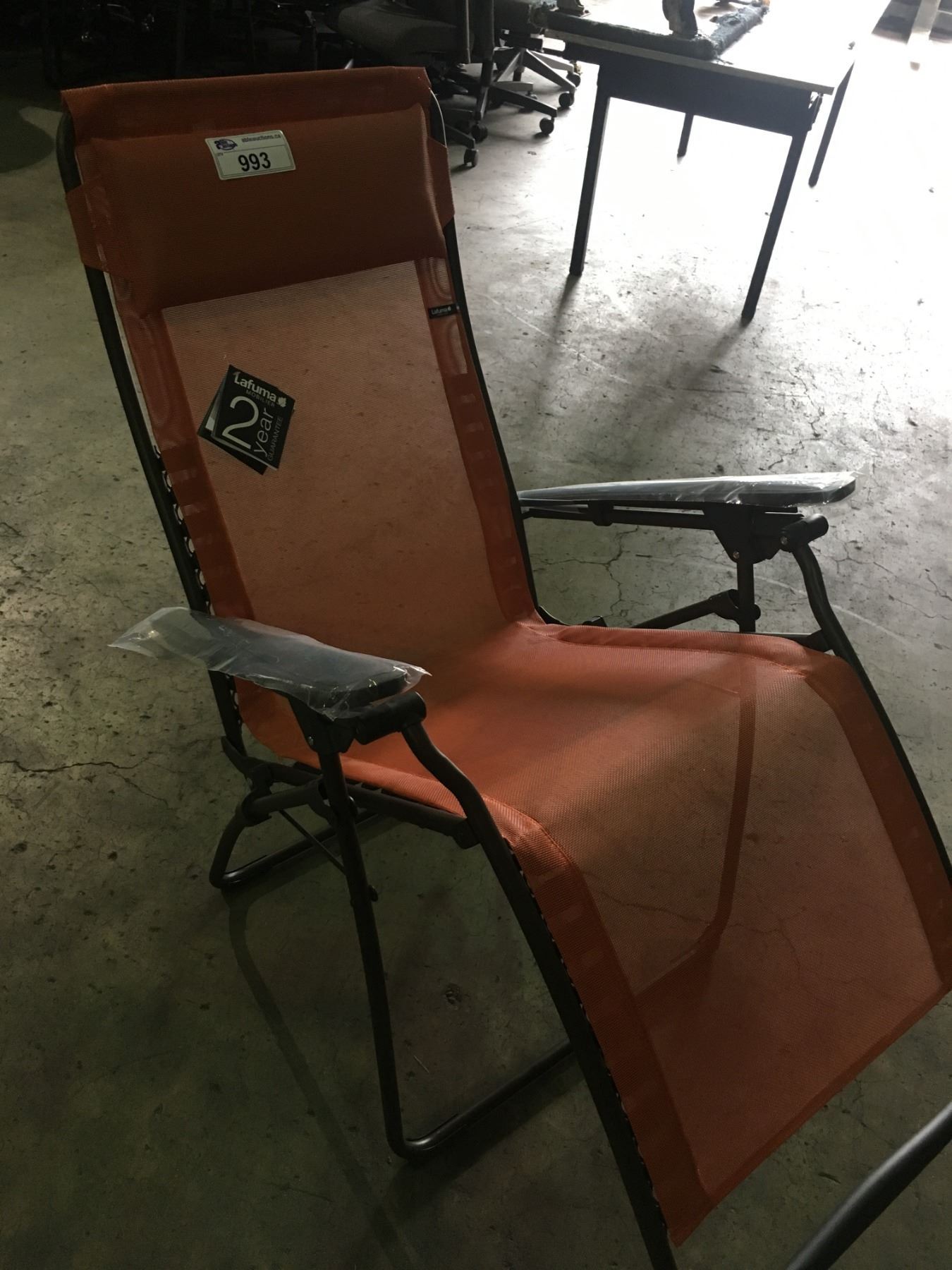 LAFUMA MOBILIER ORANGE MESH FOLDING OUTDOOR PATIO LOUNGE CHAIR