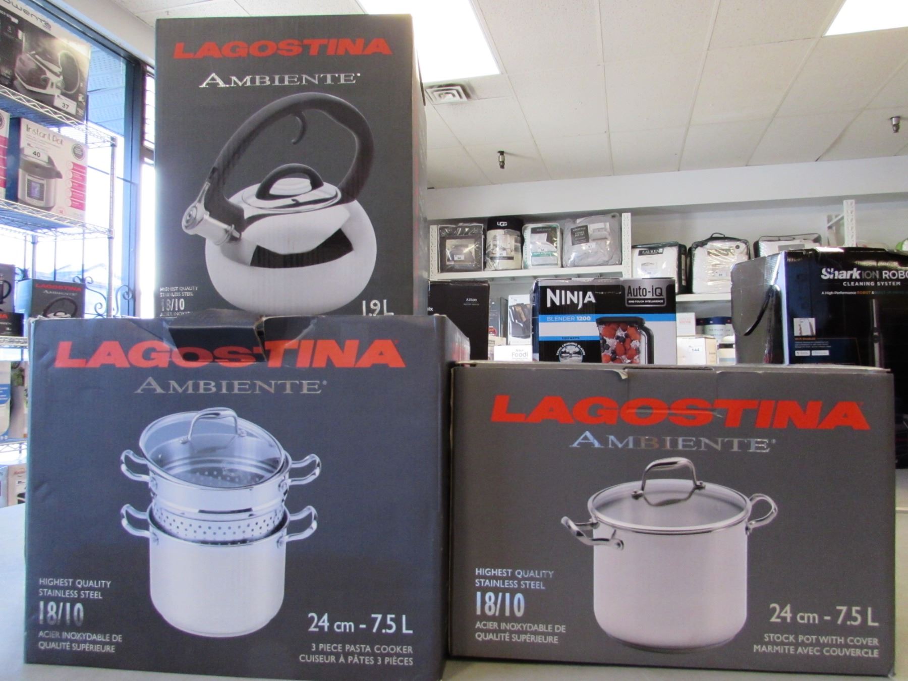 LAGOSTINA 7.5L PASTA COOKER (INCOMPLETE), LAGOSTINA 7.5L STOCK POT WITH COVER, LAGOSTINA 1.9L WHISTLING KETTLE