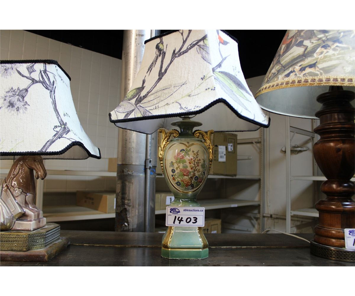 LAMP WITH SHADE- PORCELAIN FLORAL BASE