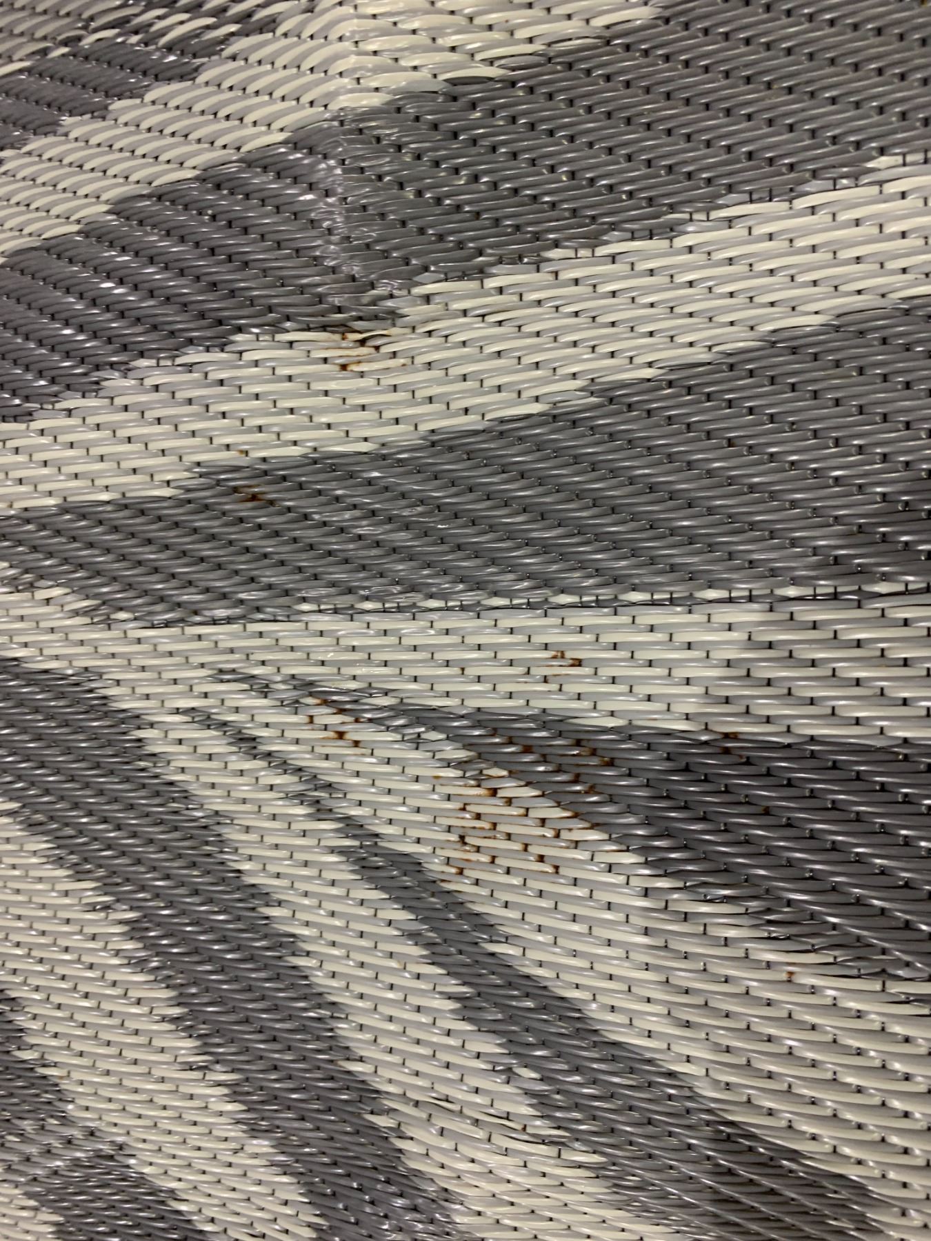 LANART PATTERNED INDOOR/OUTDOOR AREA RUG 10'X7'10" (HAS SMALL DISCOLORATION MARK)