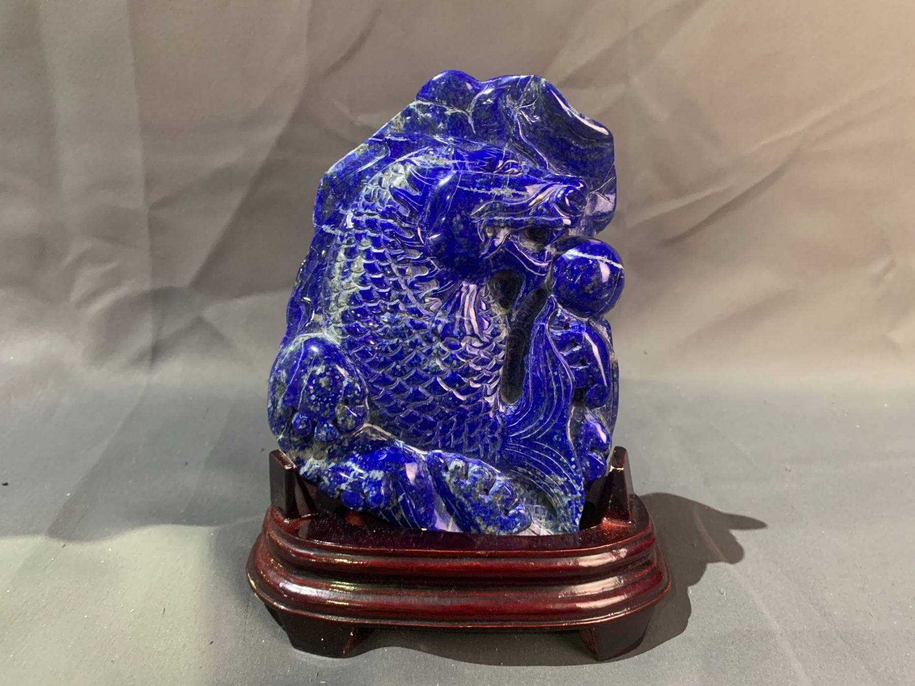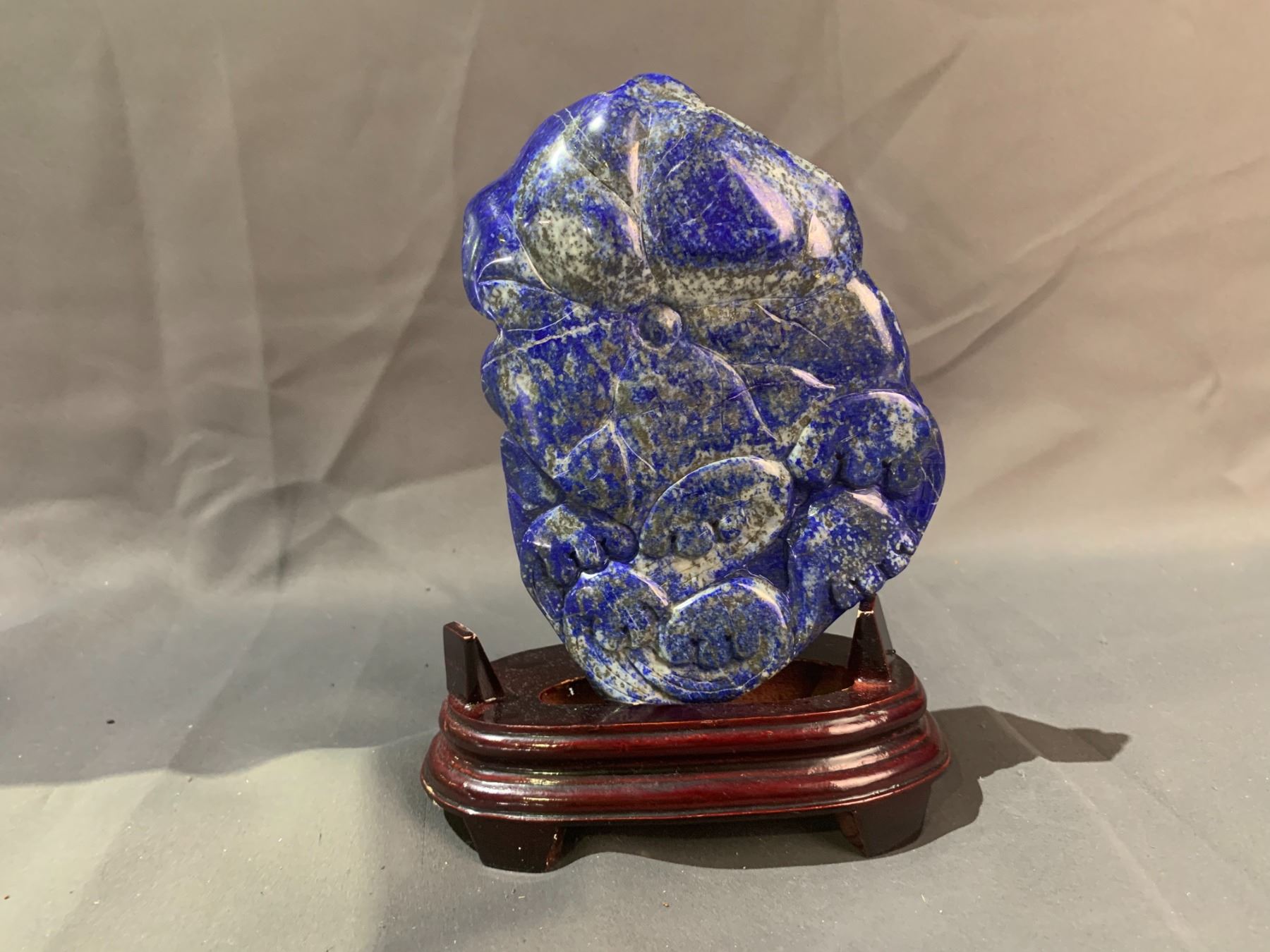 LAPIS LAZULI CARVING ON STAND APPROX 6 X 7"