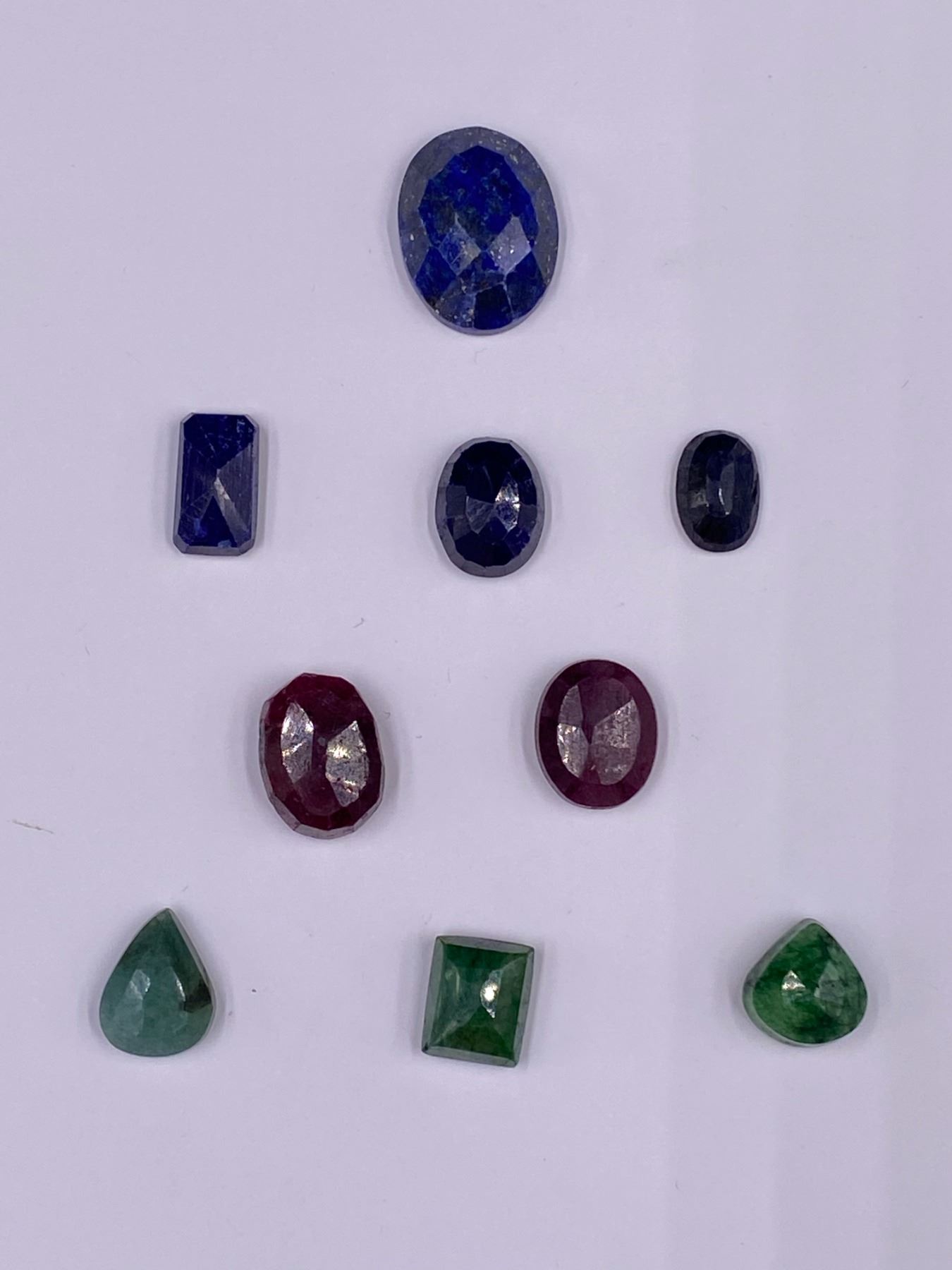 LAPIS LAZULI CHECKERED CABOCHON 21.85CT, BRAZILIAN EMERALD 21.05CT, RUBY 30.35CT, SAPPHIRE 23.35CT