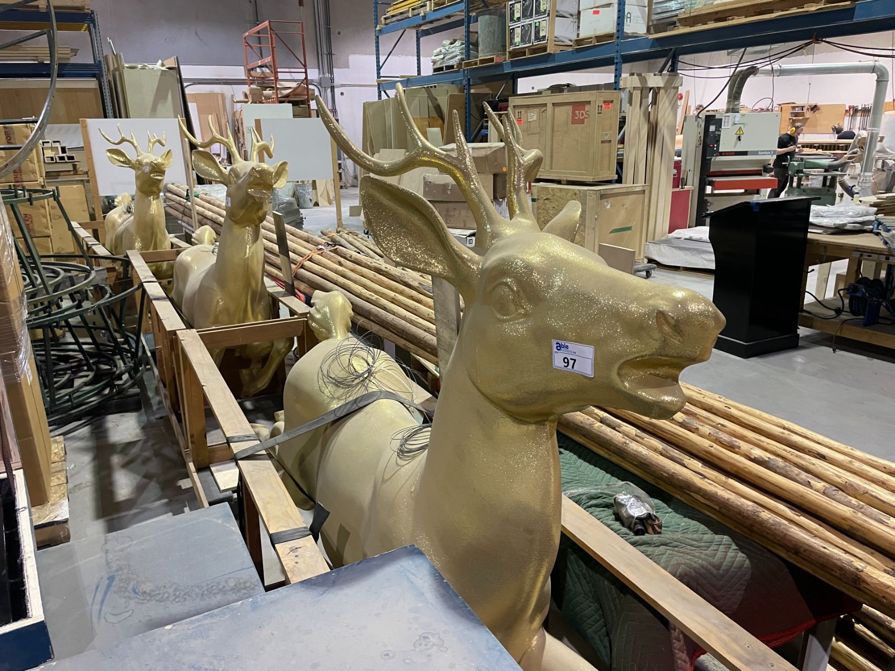 LARGE 114"L X 3'W X 72"H GOLD GLITTER REINDEER STATUE
