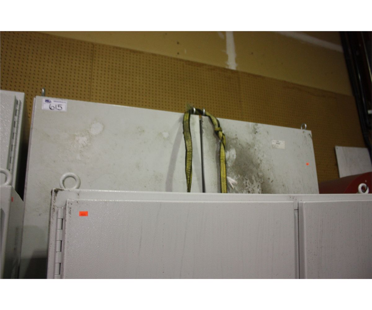 LARGE 2 DOOR METAL CABINET DENTS AND CUT OUTS