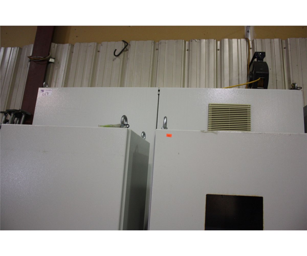 LARGE 2 DOOR METAL CABINET WITH DENTS AND CUT OUTS