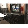 LARGE 66" DARK WOOD 7-DRAWER DRESSER WITH MIRROR (SLIGHT DAMAGE AT BASE OF MIRROR)
