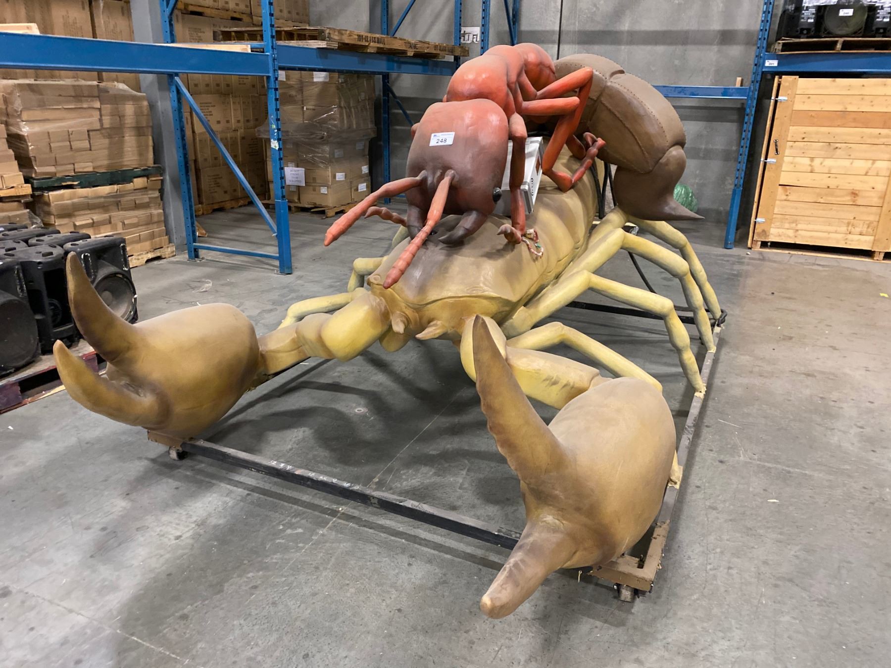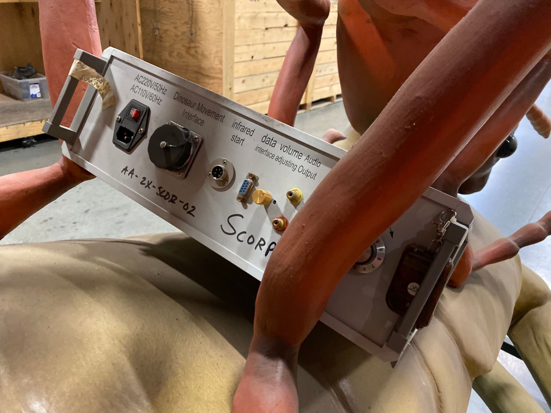 LARGE ANIMATRONIC SCORPION, ON STAND WITH WHEELS. INCLUDES CONTROL BOX