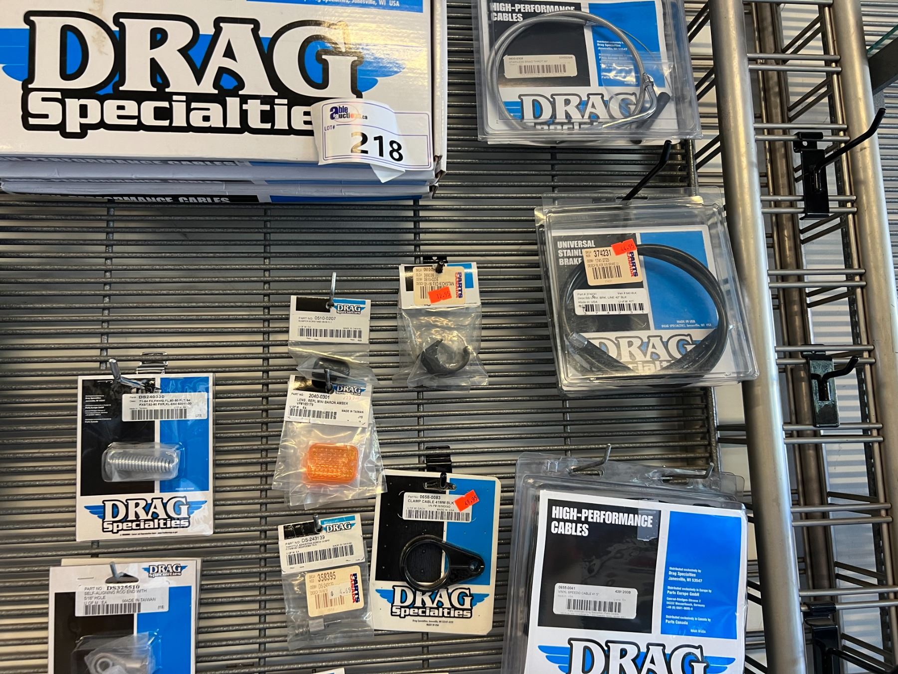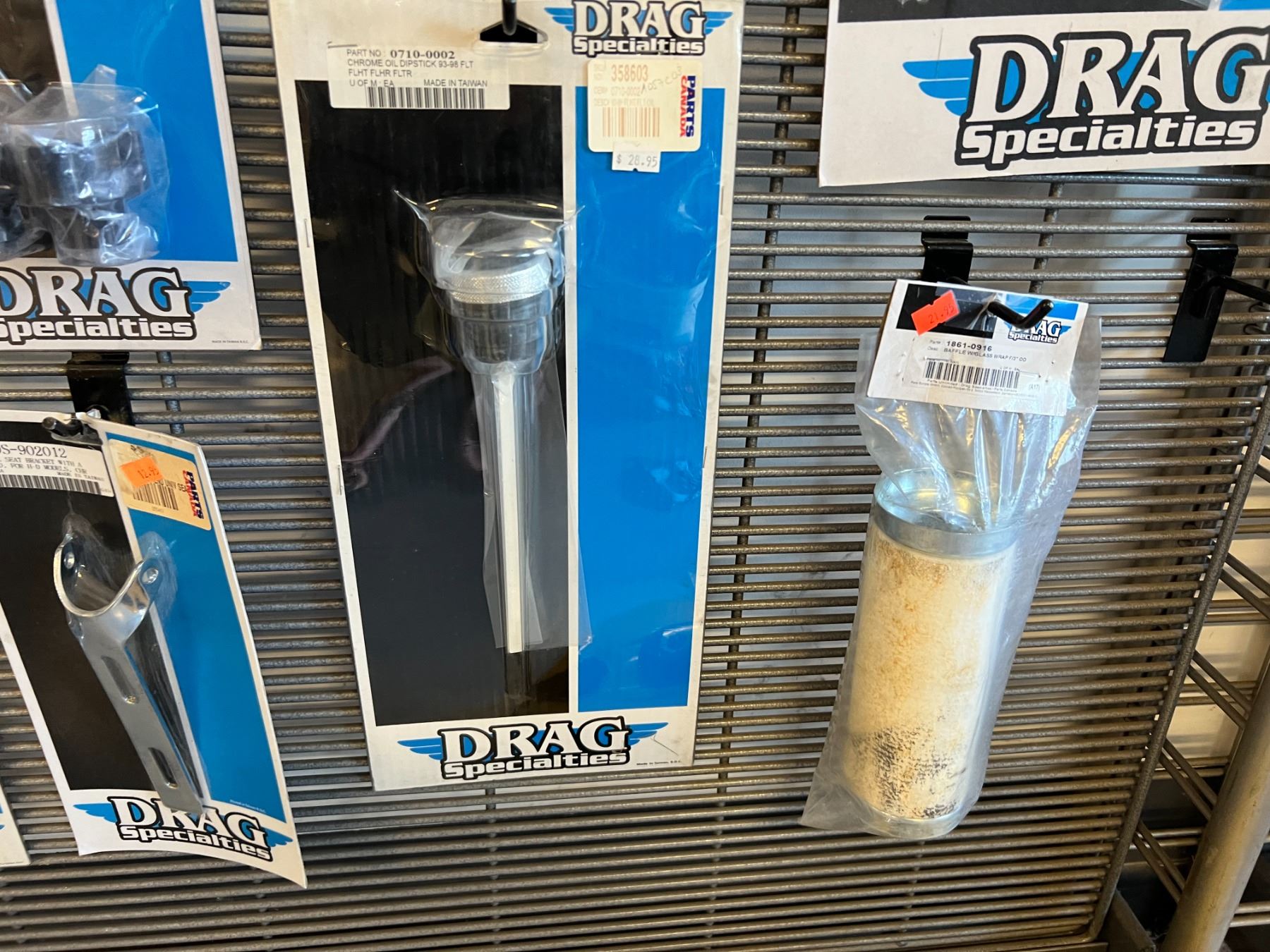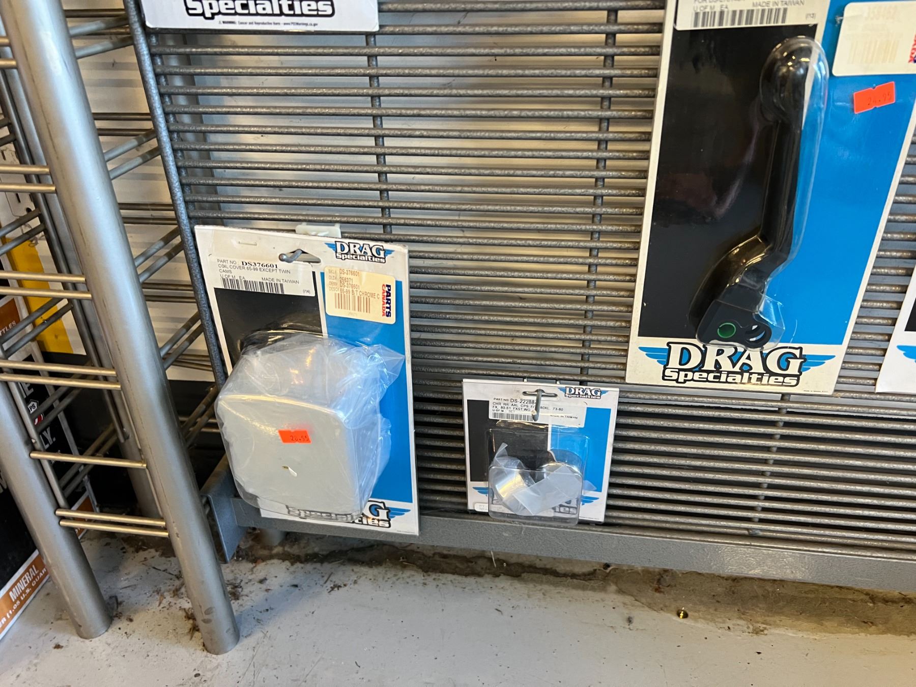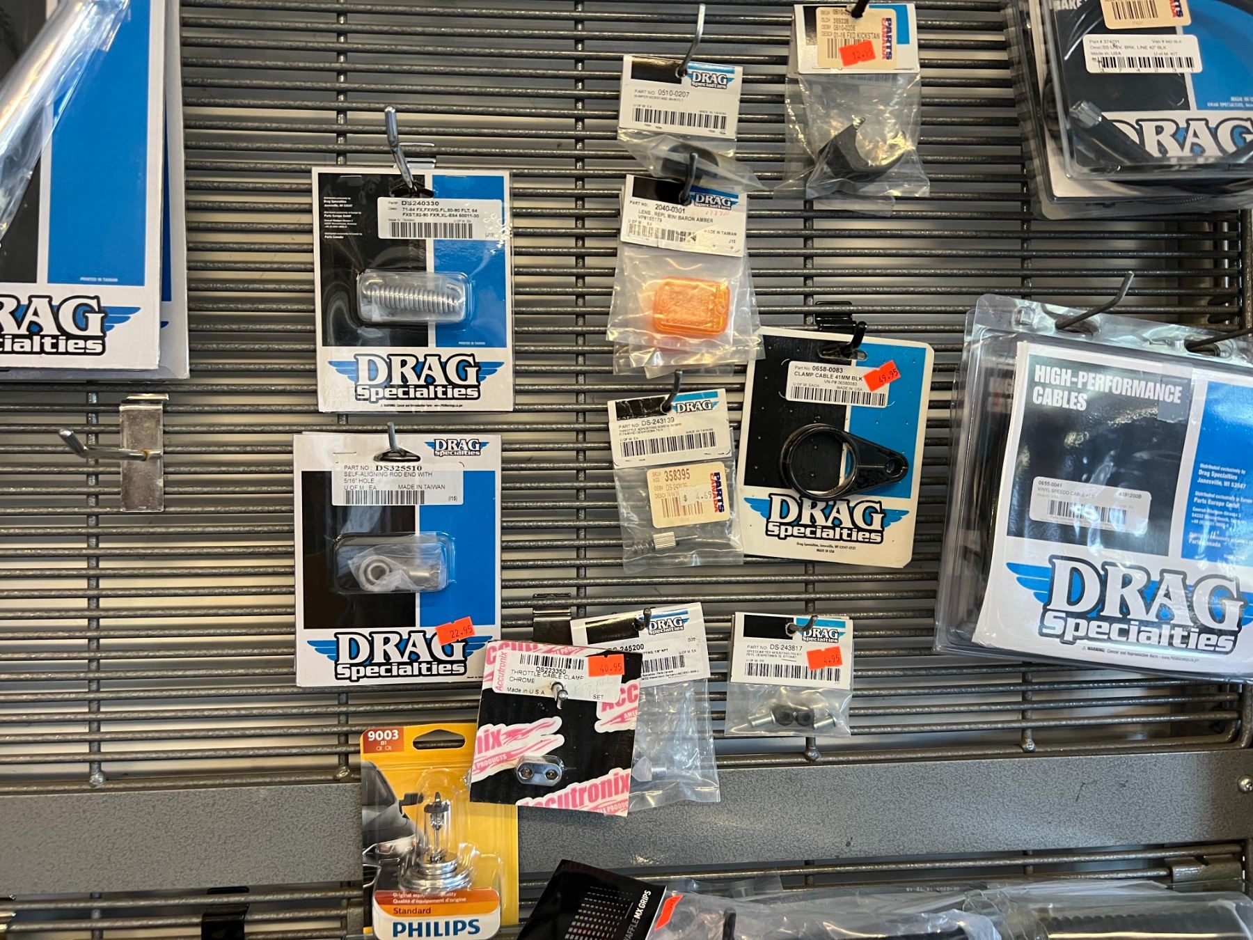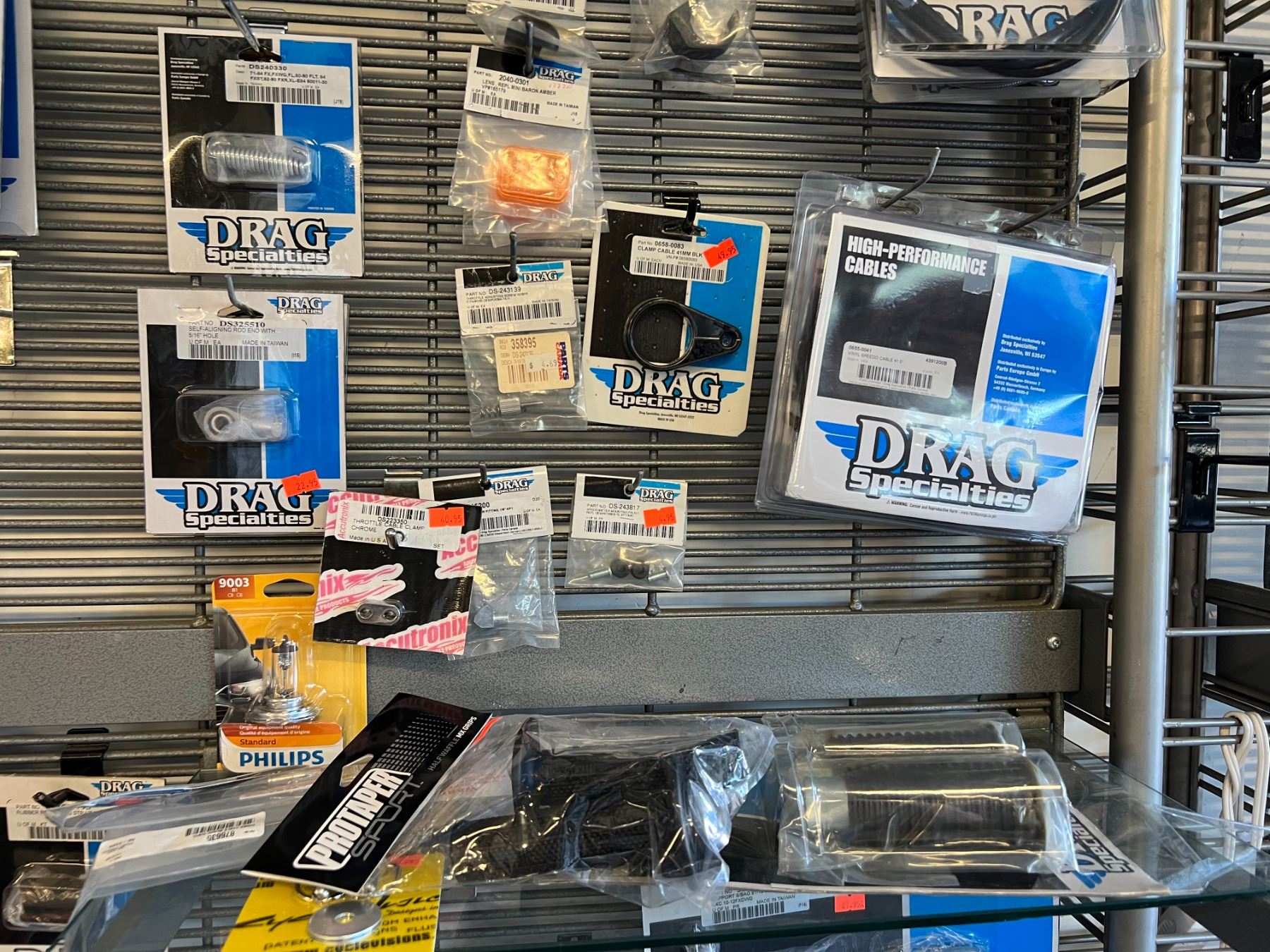 LARGE ASSORTMENT OF DRAG SPECIALTIES HARLEY-DAVIDSON ACCESSORIES (OVER 60 PIECES) RACK NOT INCLUDED