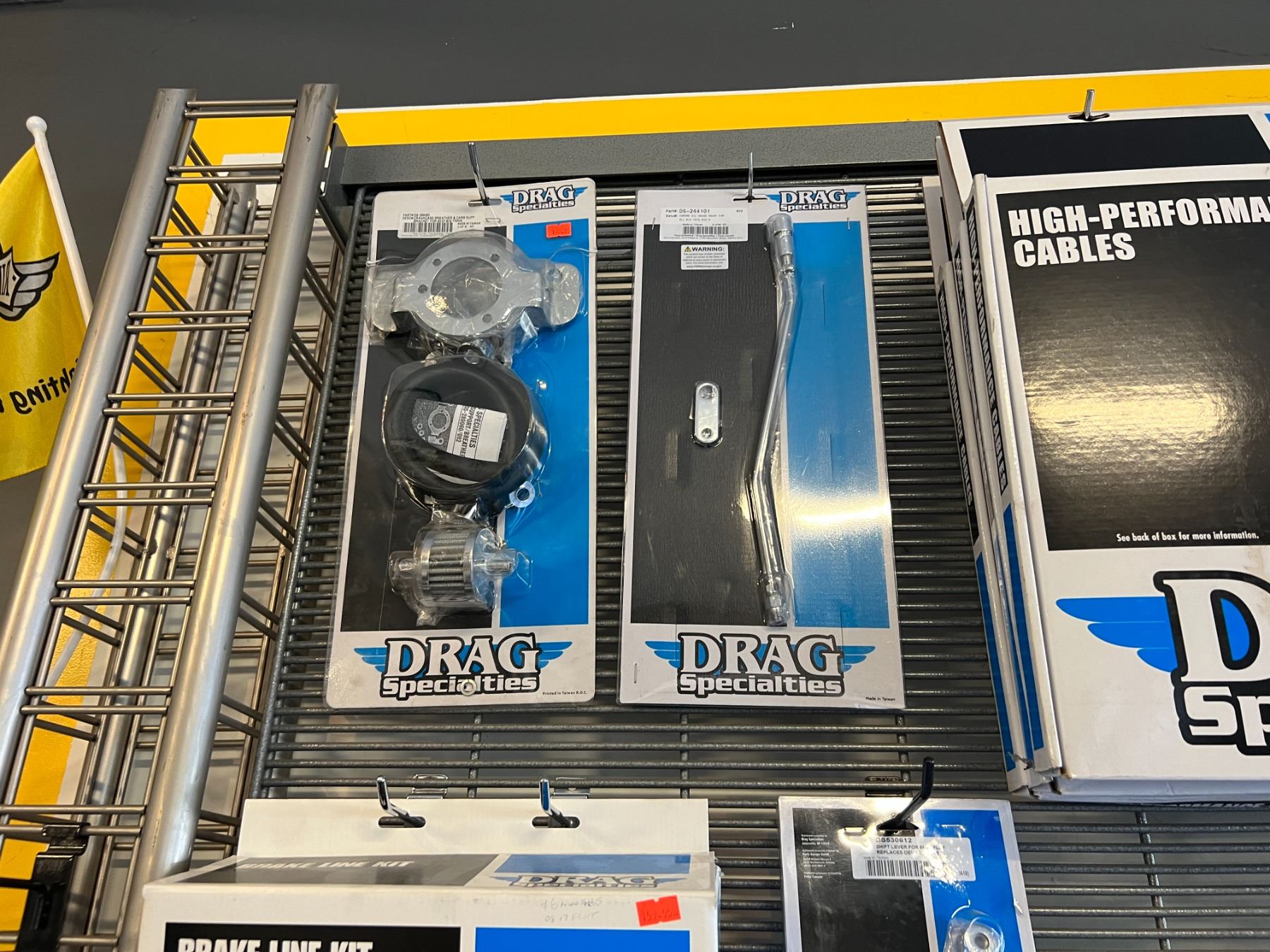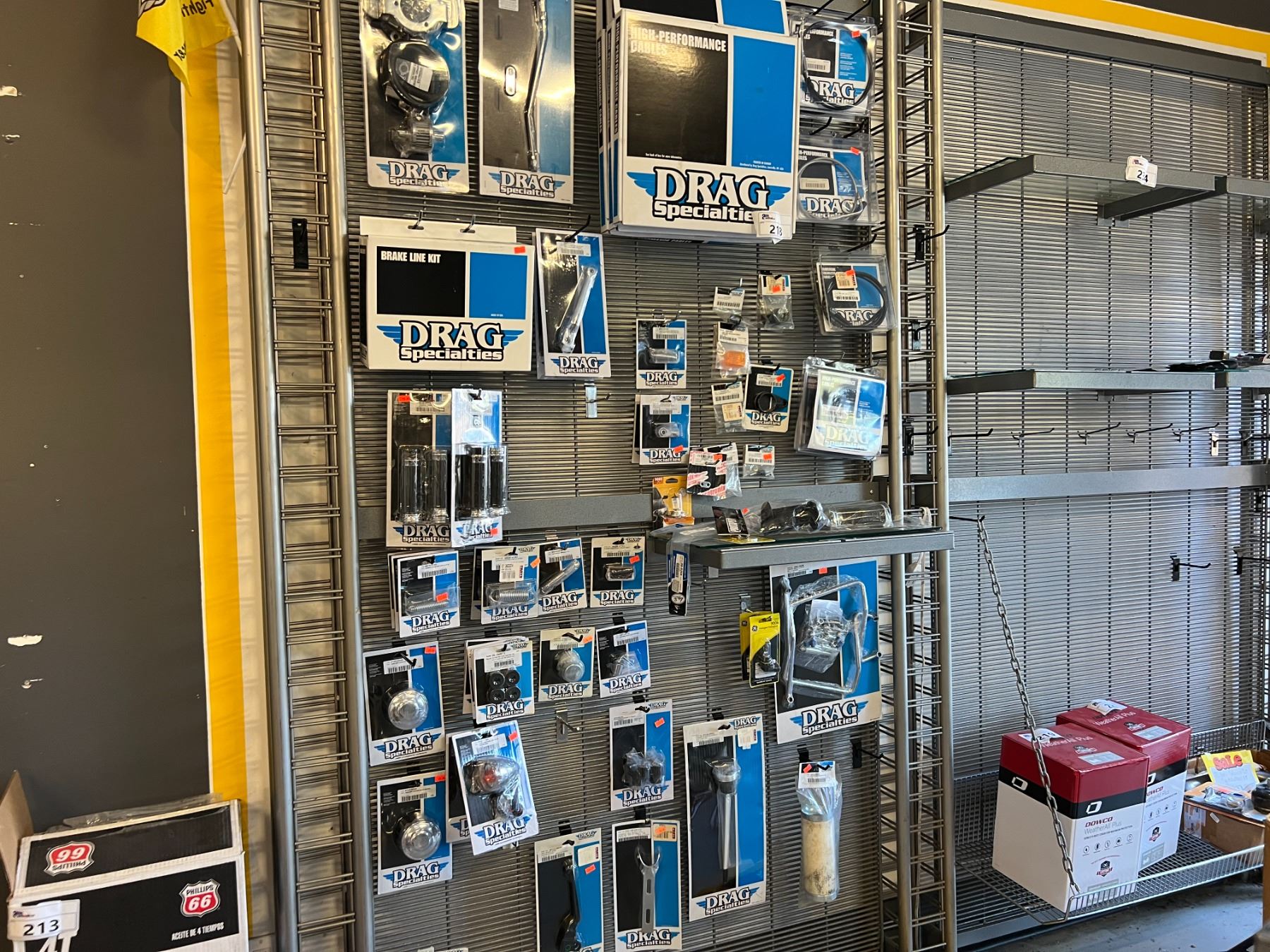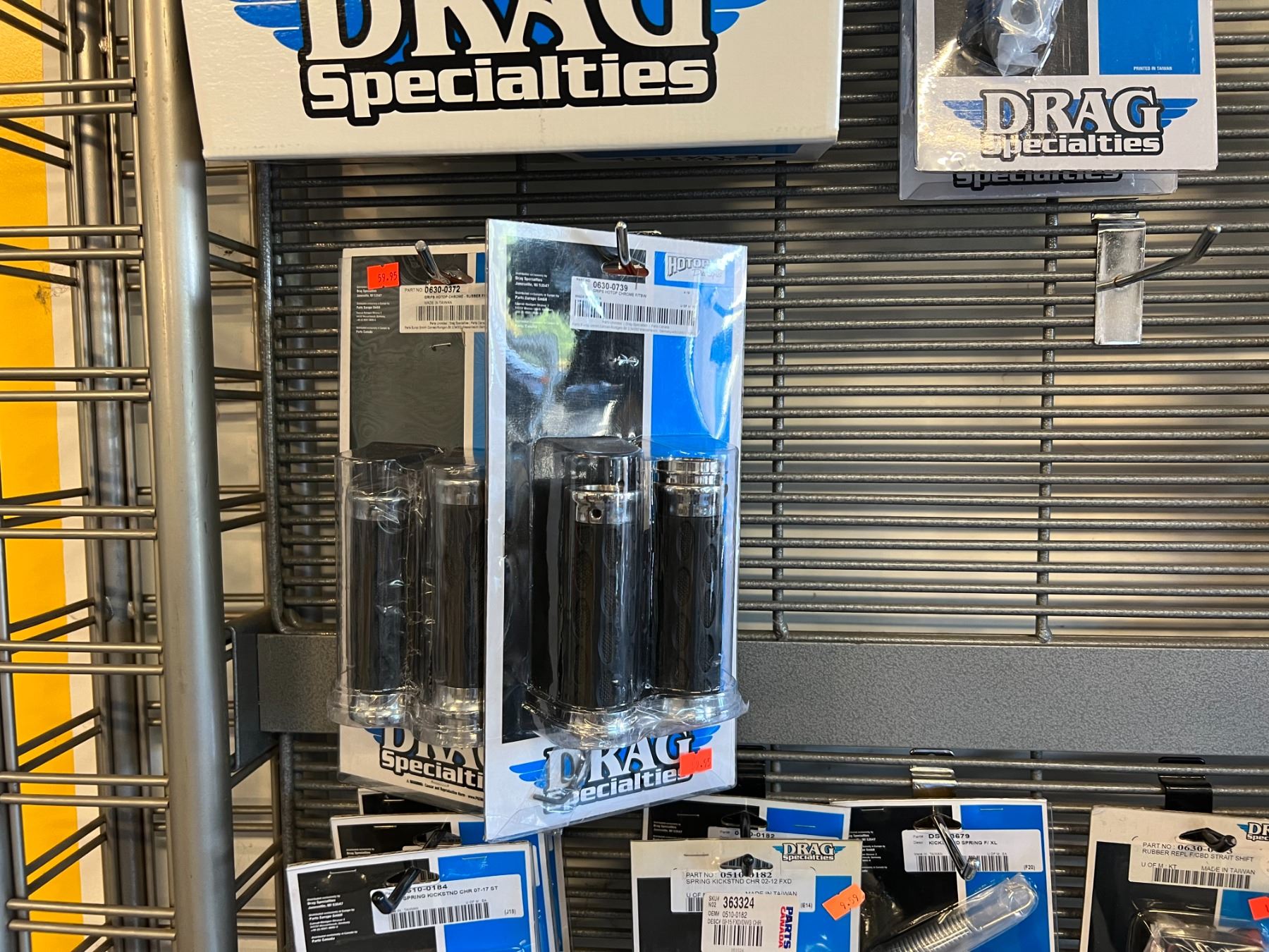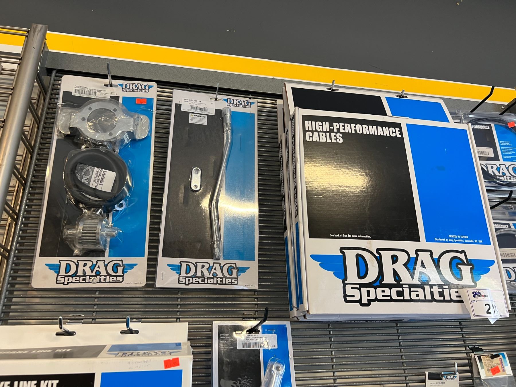 LARGE ASSORTMENT OF DRAG SPECIALTIES HARLEY-DAVIDSON ACCESSORIES (OVER 60 PIECES) RACK NOT INCLUDED