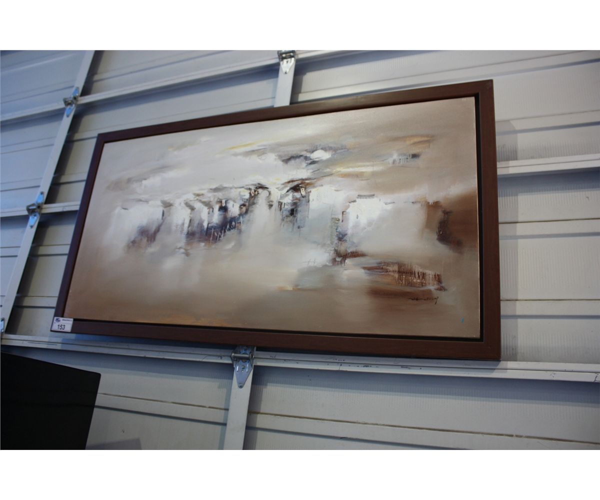 LARGE BEIGE FRAMED IMPRESSIONIST ARTWORK