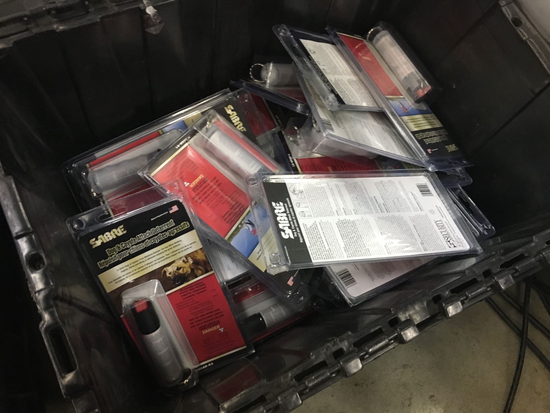 LARGE BIN OF SABRE DOG & COYOTE ATTACK DETERRENT CARTRIGES, BIN NOT INCLUDED