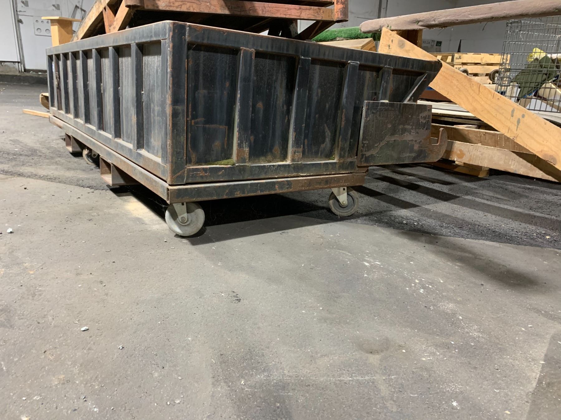 LARGE BLACK METAL FORKLIFT DUMP BIN-APPROX. 8FT ACROSS X 4FT WIDE