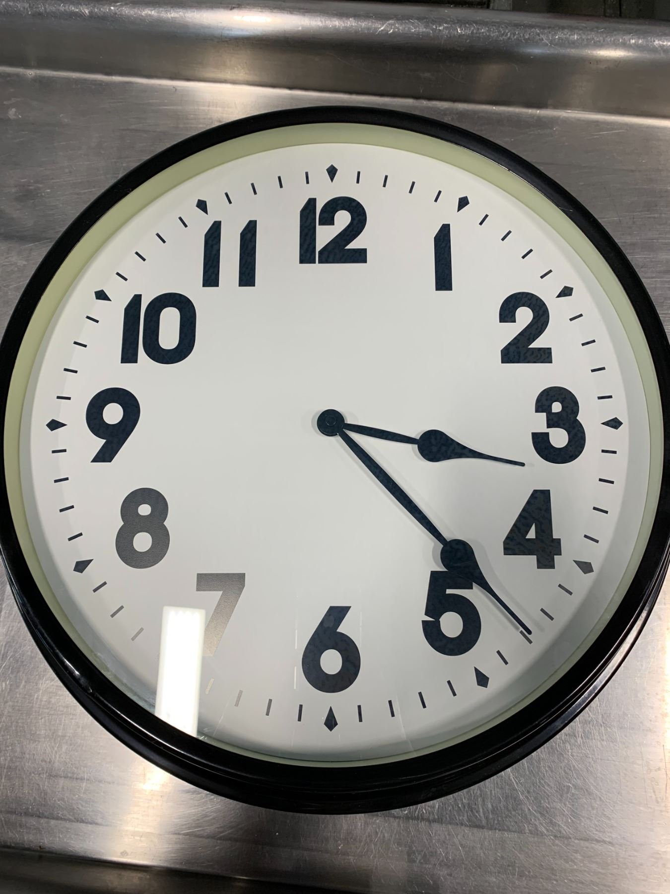 LARGE BLACK METAL SHOP CLOCK (20" DIAMETER)