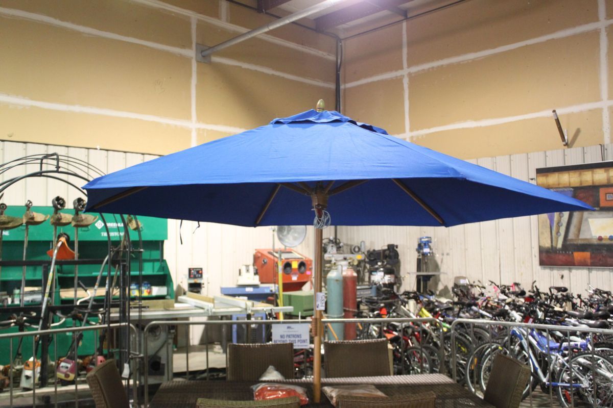 LARGE BLUE CANVAS PATIO UMBRELLA