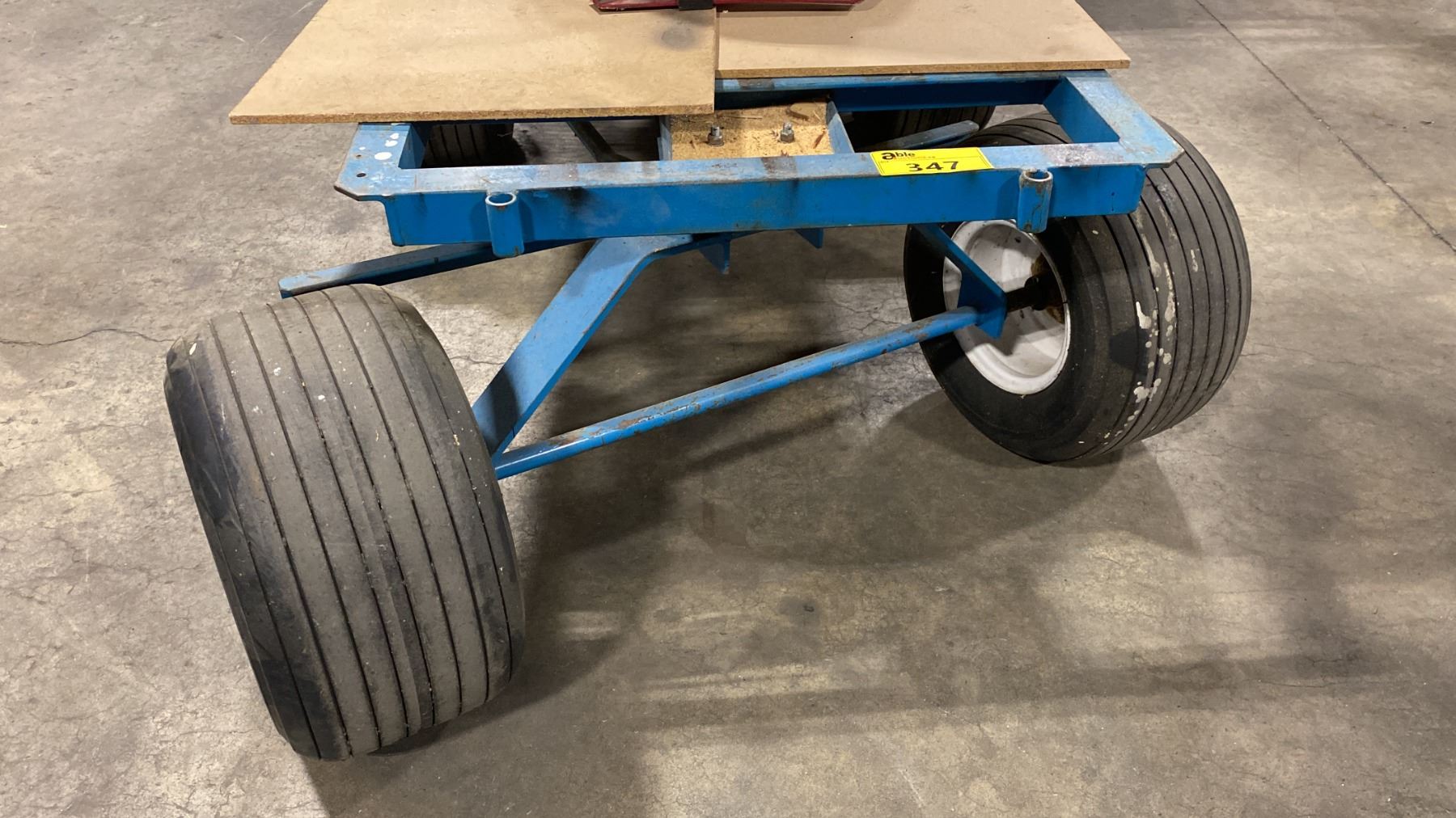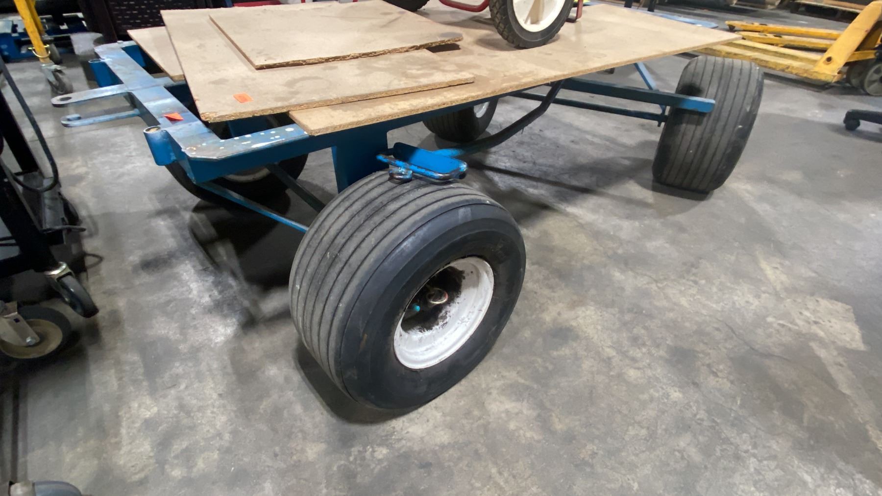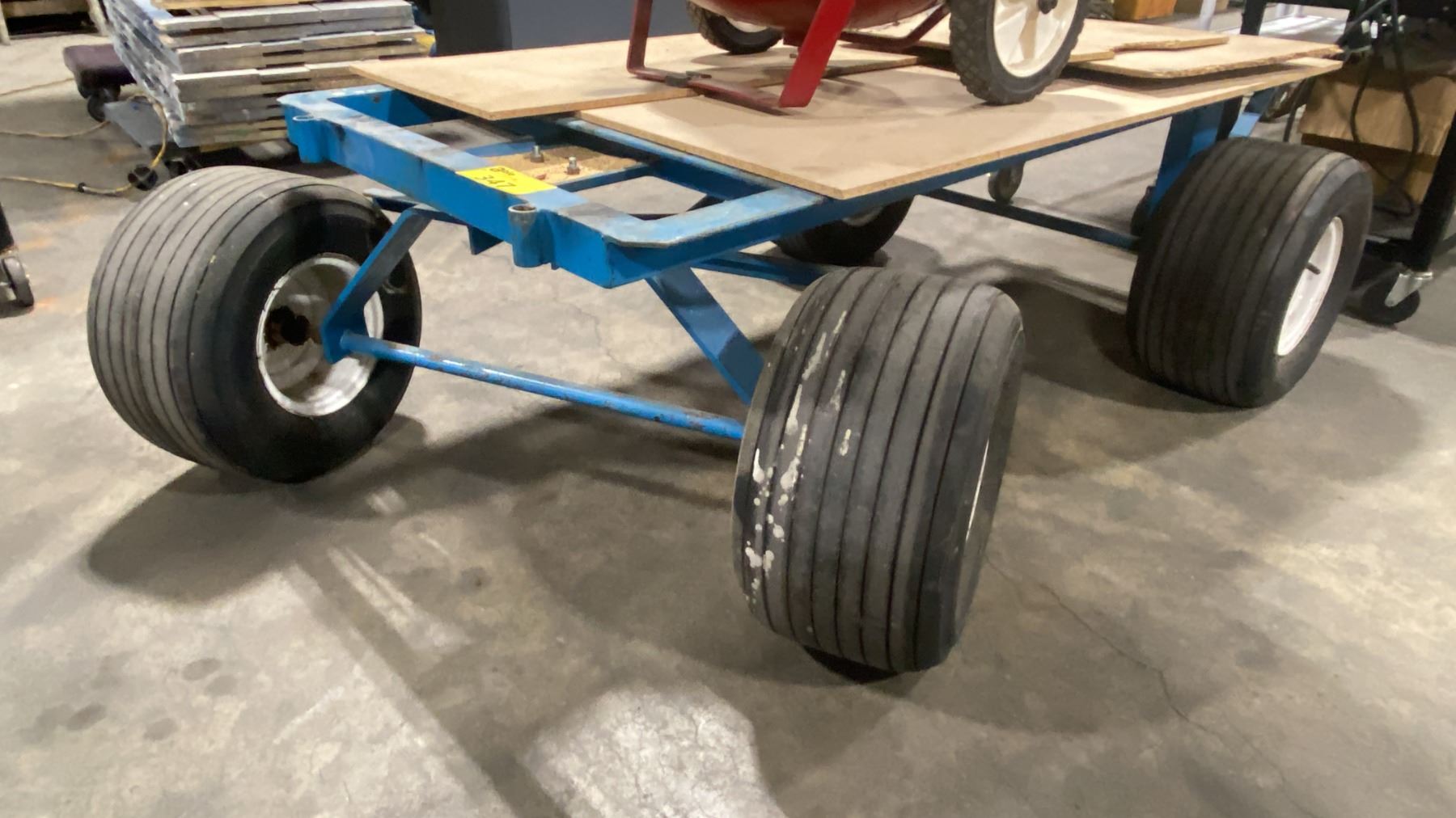 LARGE BLUE METAL PNEUMATIC TIRED INDUSTRIAL PULL CART