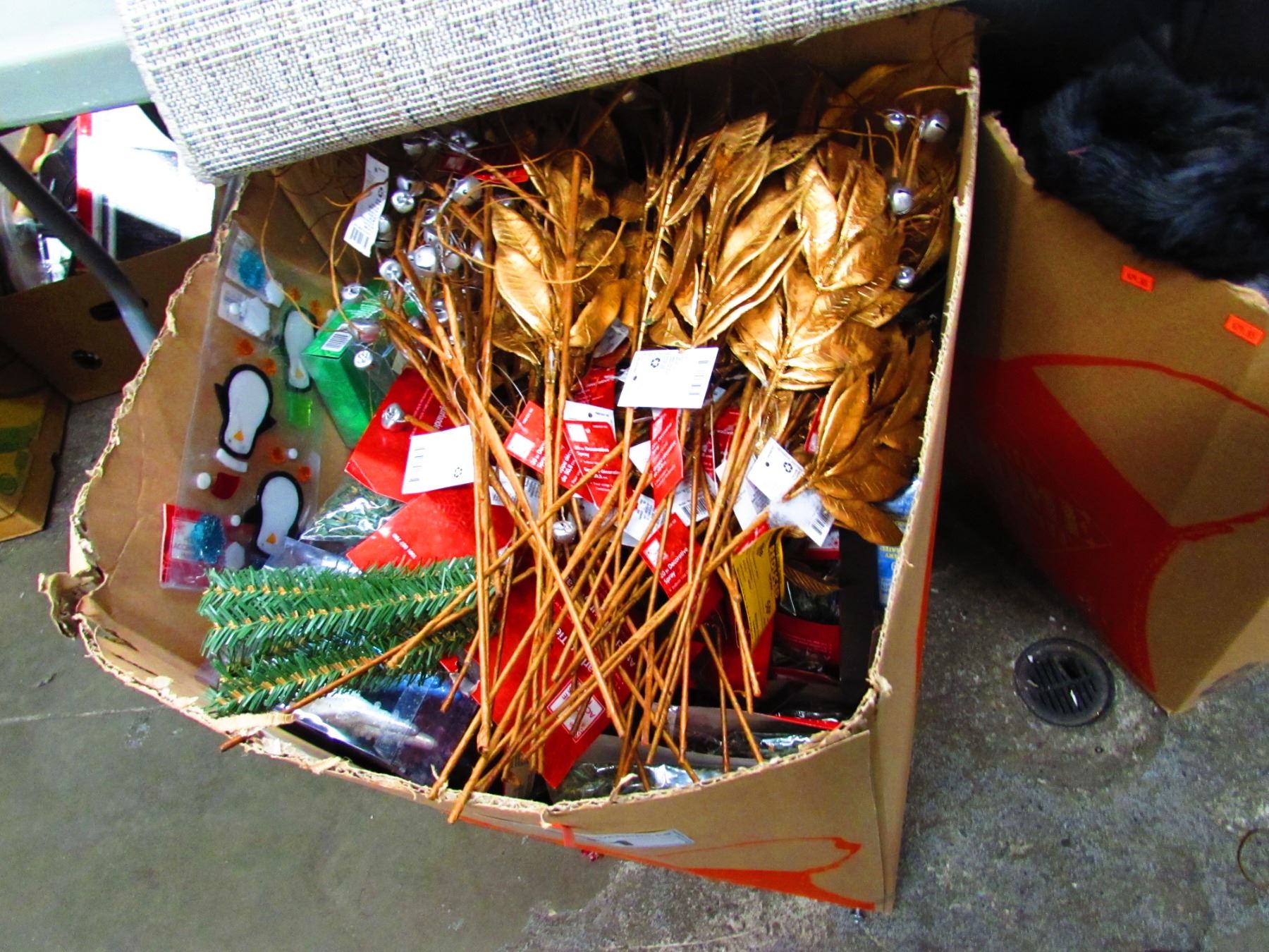 LARGE BOX ASSORTED CHRISTMAS SUPPLY & DECOR
