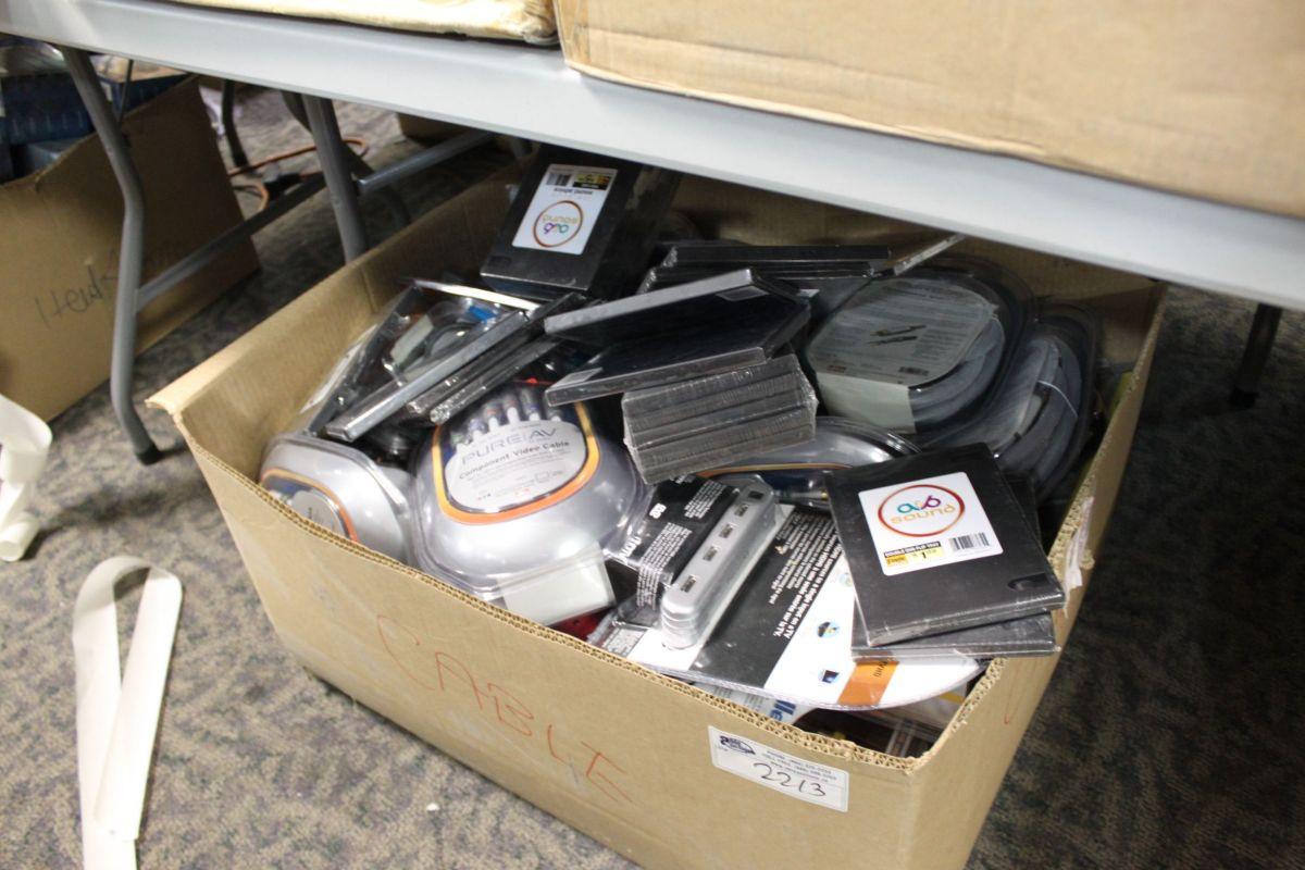 LARGE BOX OF ASSORTED AV CABLES & SUPPLIES